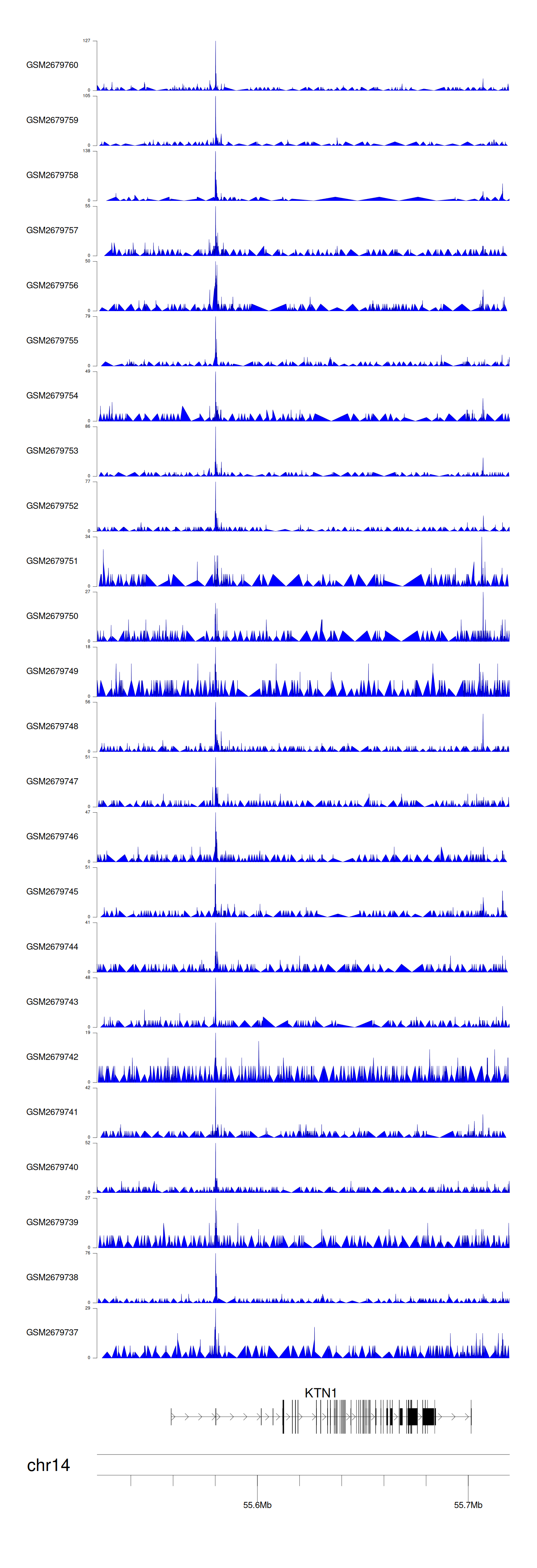 > Dataset: GSE30738 - KTN1 peak across samples