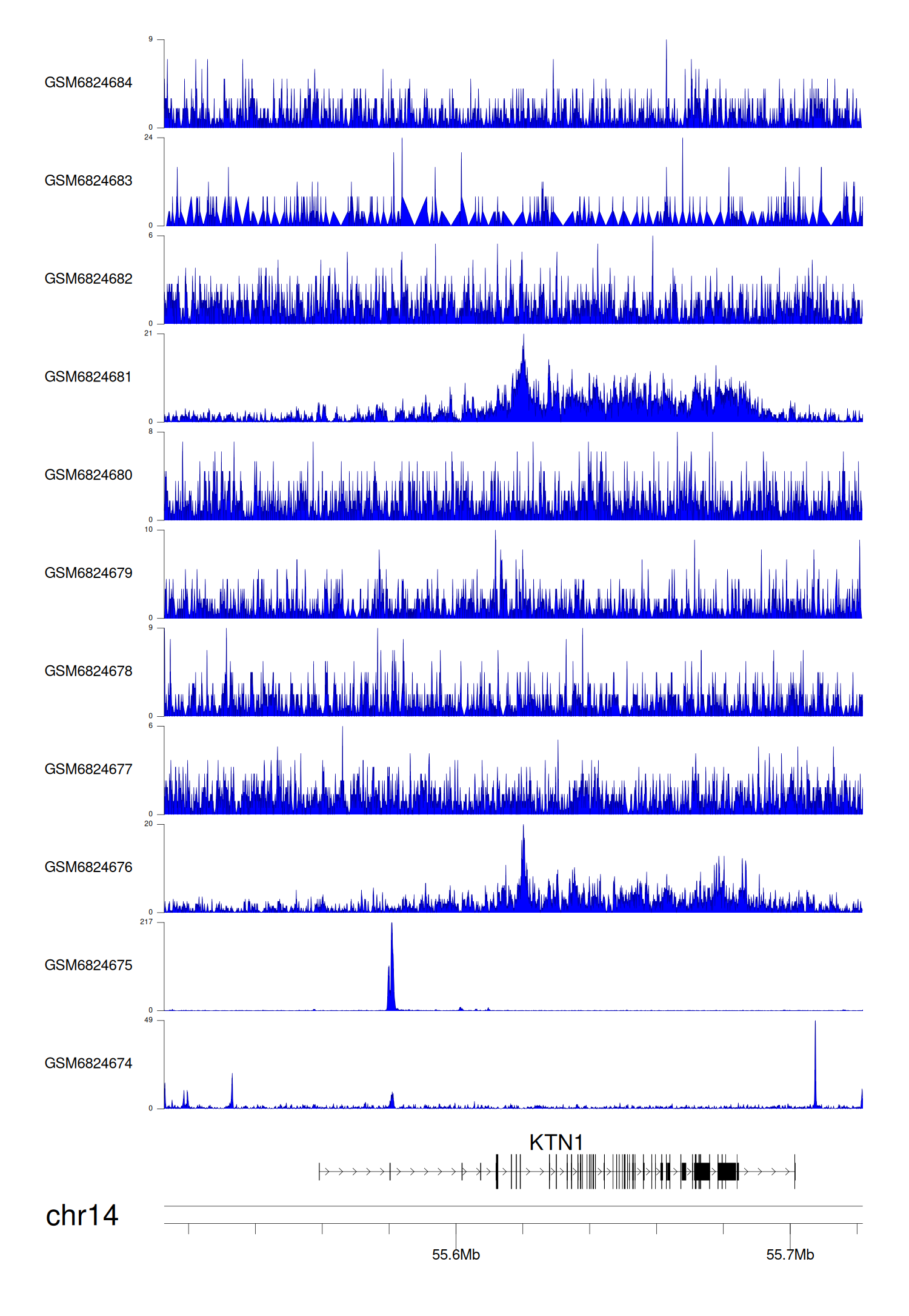 > Dataset: GSE211651 - KTN1 peak across samples