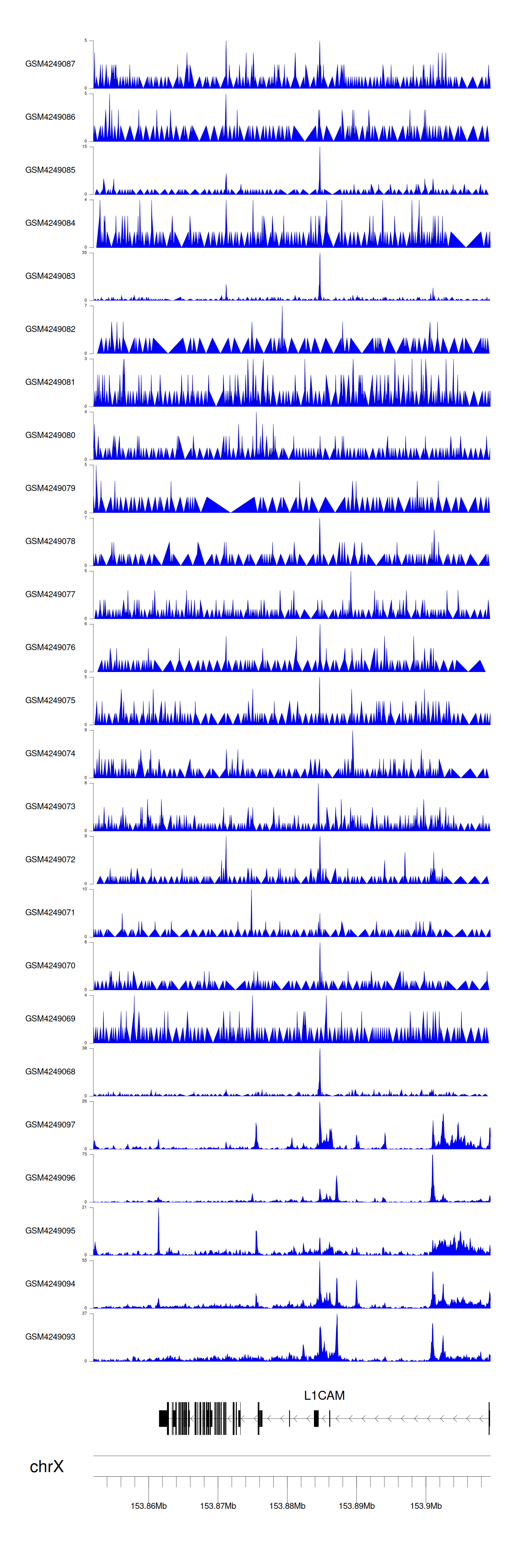 The protein encoded by this gene is an axonal glycoprotein belonging to the immunoglobulin supergene family. The ectodomain, consisting of several immunoglobulin-like domains and fibronectin-like repeats (type III), is linked via a single transmembrane sequence to a conserved cytoplasmic domain. This cell adhesion molecule plays an important role in nervous system development, including neuronal migration and differentiation. Mutations in the gene cause X-linked neurological syndromes known as CRASH (corpus callosum hypoplasia, retardation, aphasia, spastic paraplegia and hydrocephalus). Alternative splicing of this gene results in multiple transcript variants, some of which include an alternate exon that is considered to be specific to neurons. [provided by RefSeq, May 2013] |