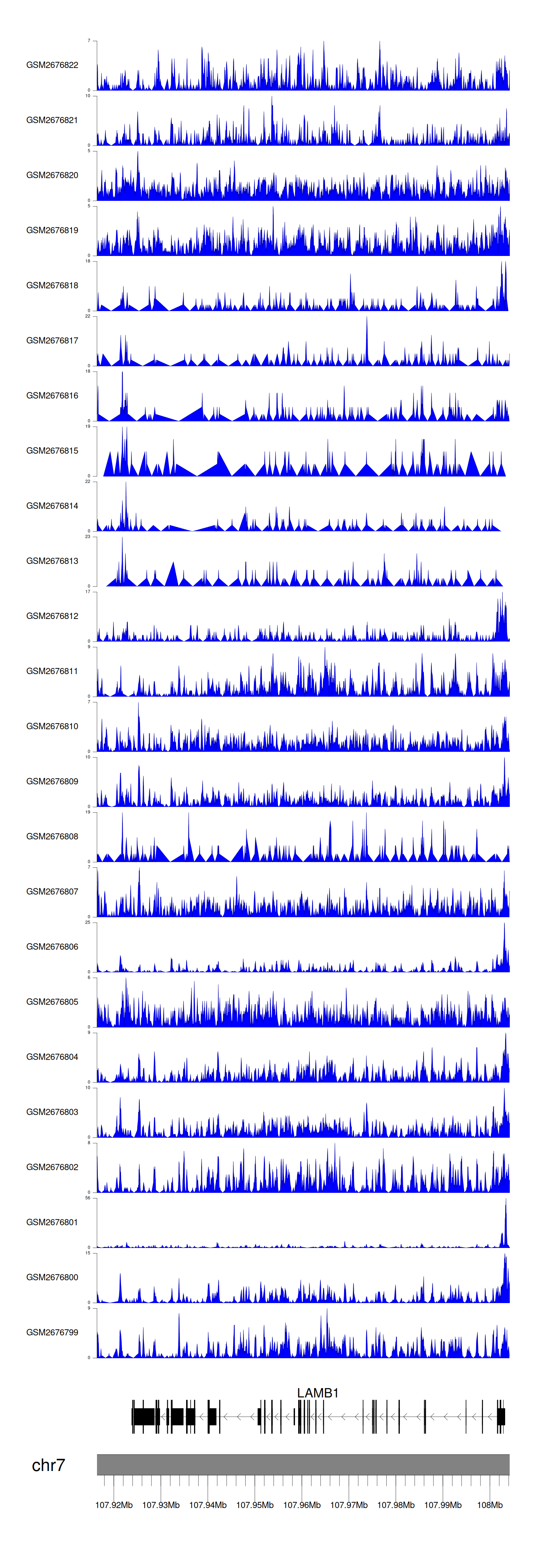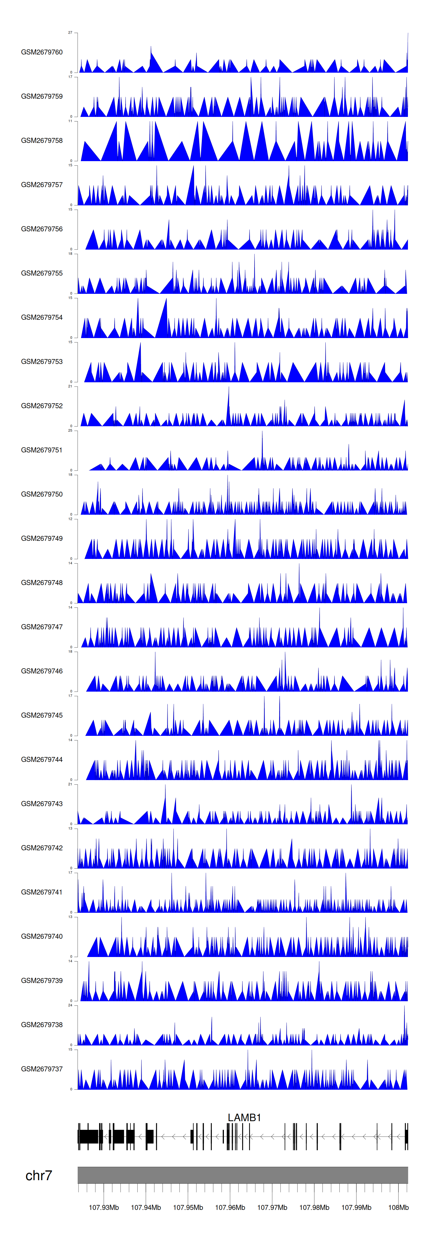 > Dataset: GSE100376 - LAMB1 peak across samples