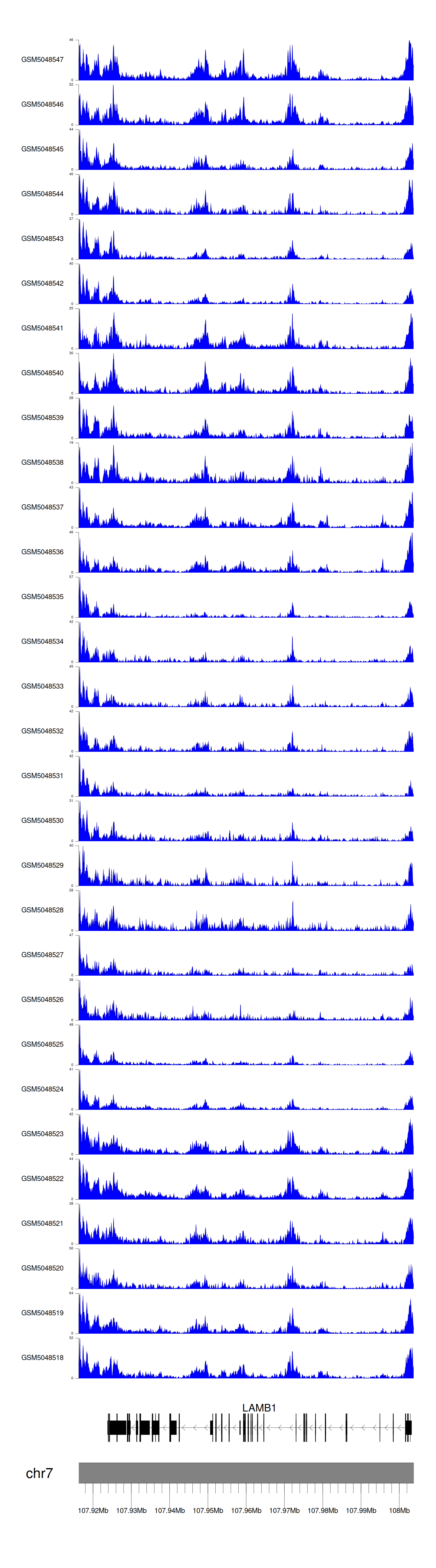 > Dataset: GSE30738 - LAMB1 peak across samples