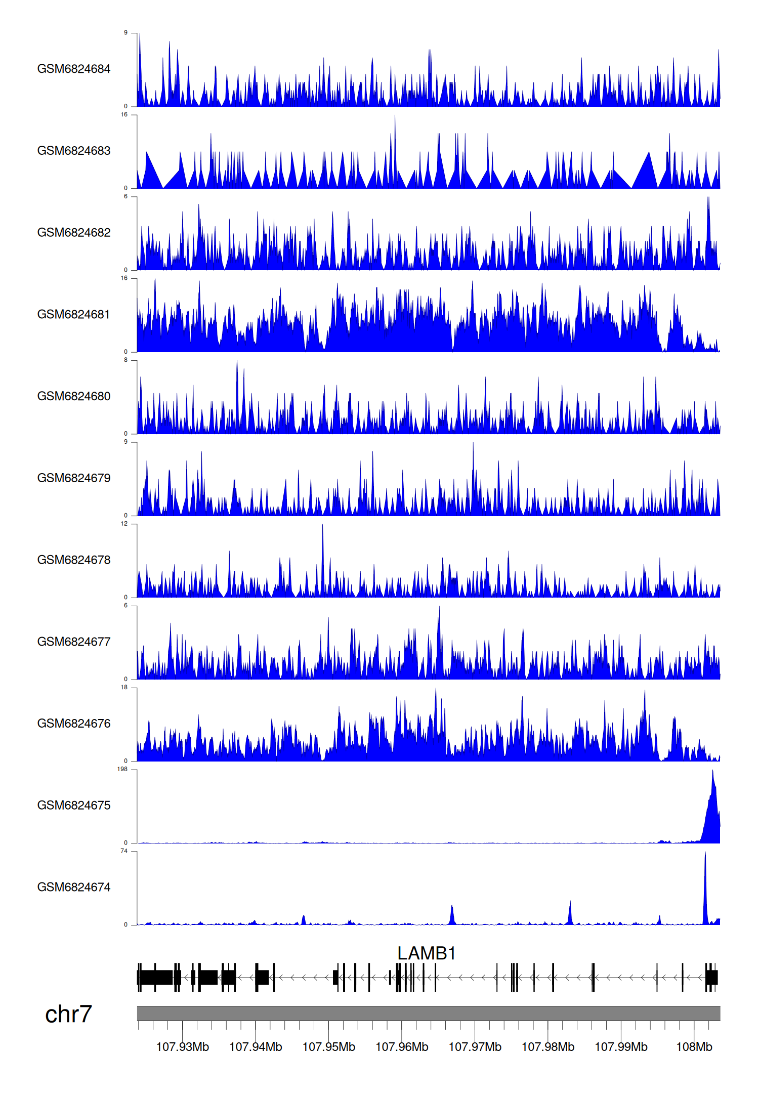 > Dataset: GSE165703 - LAMB1 peak across samples