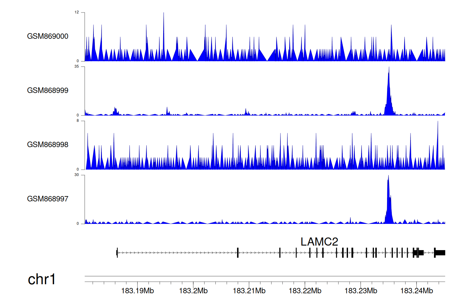 > Dataset: GSE35465 - LAMC2 peak across samples