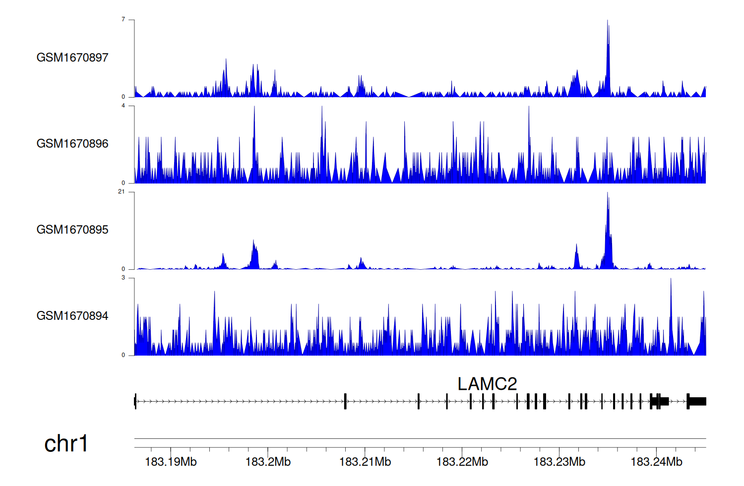 > Dataset: GSE68402 - LAMC2 peak across samples
