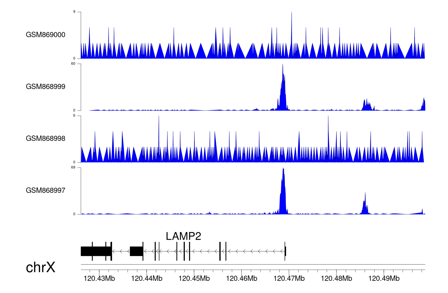 > Dataset: GSE68402 - LAMP2 peak across samples