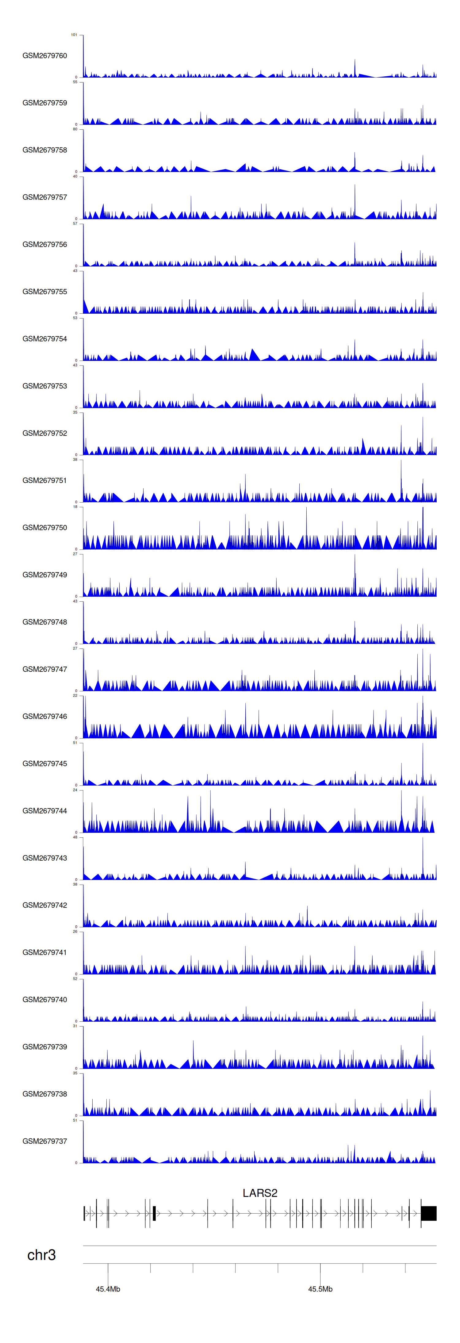 > Dataset: GSE100376 - LARS2 peak across samples