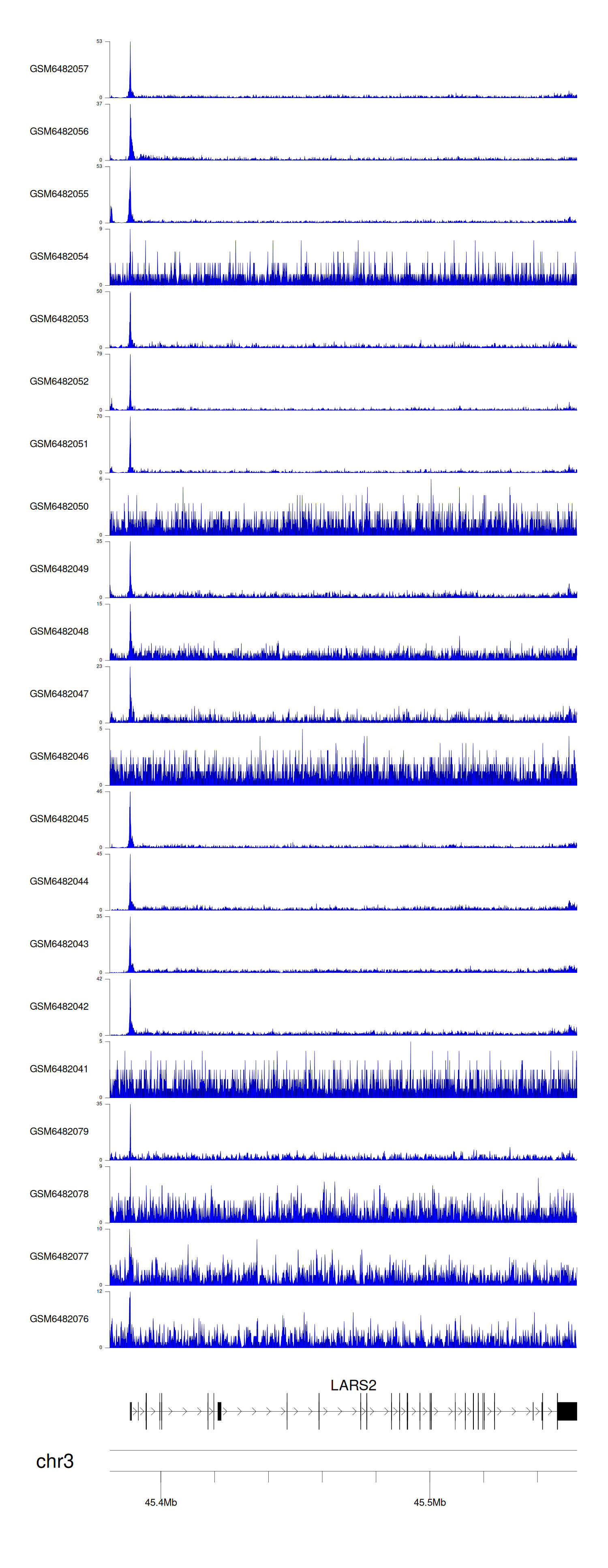> Dataset: GSE211651 - LARS2 peak across samples