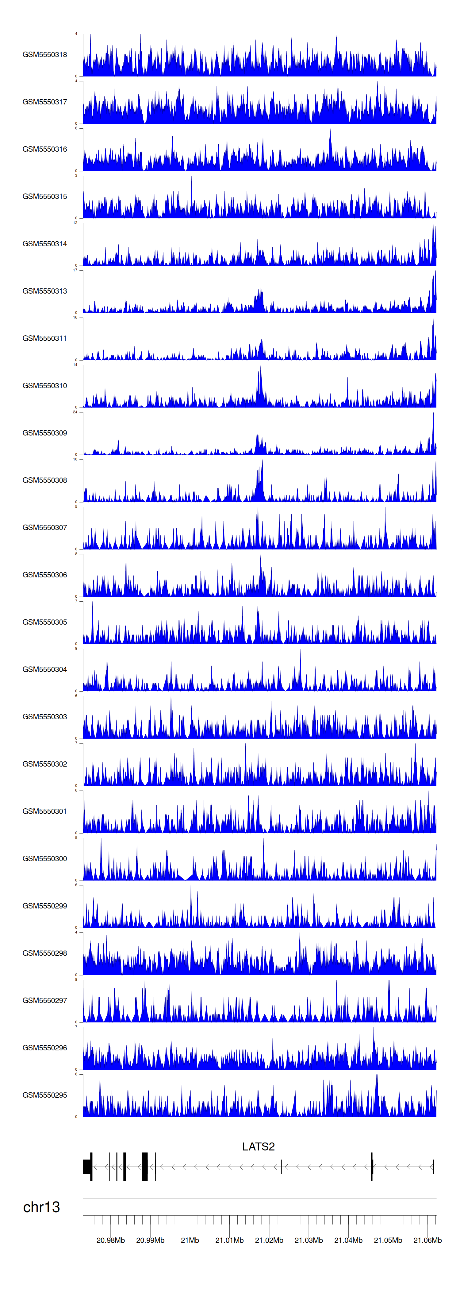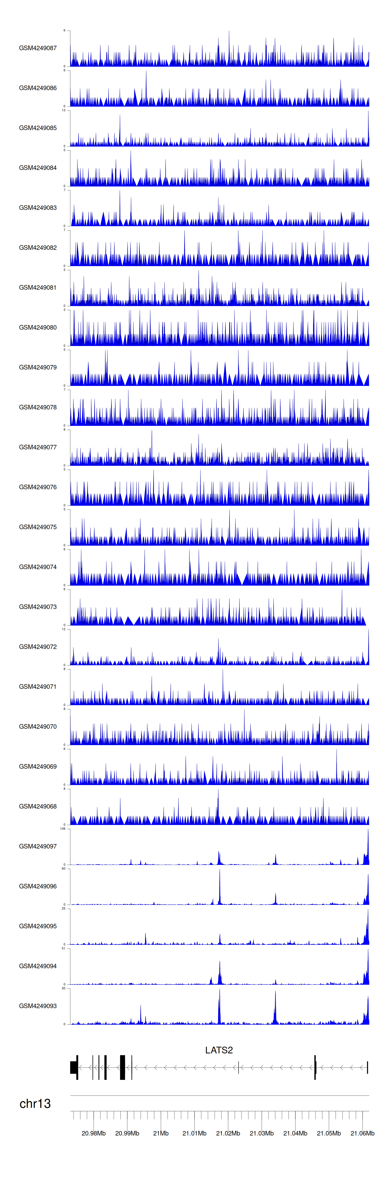 > Dataset: GSE183048 - LATS2 peak across samples
