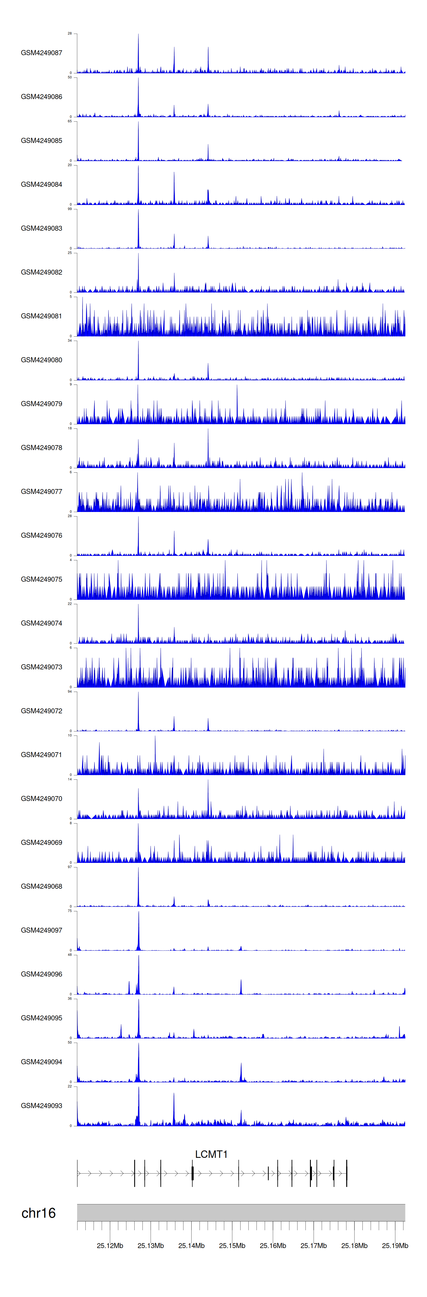 > Dataset: GSE143026 - LCMT1 peak across samples
