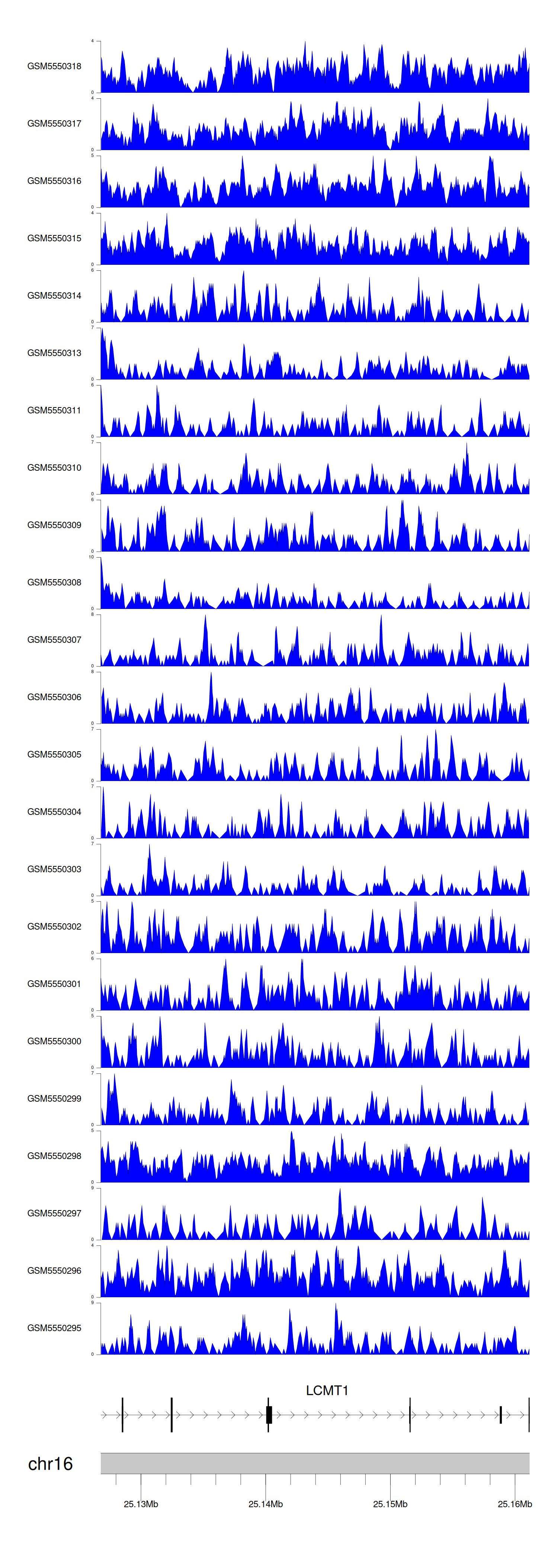 > Dataset: GSE183048 - LCMT1 peak across samples