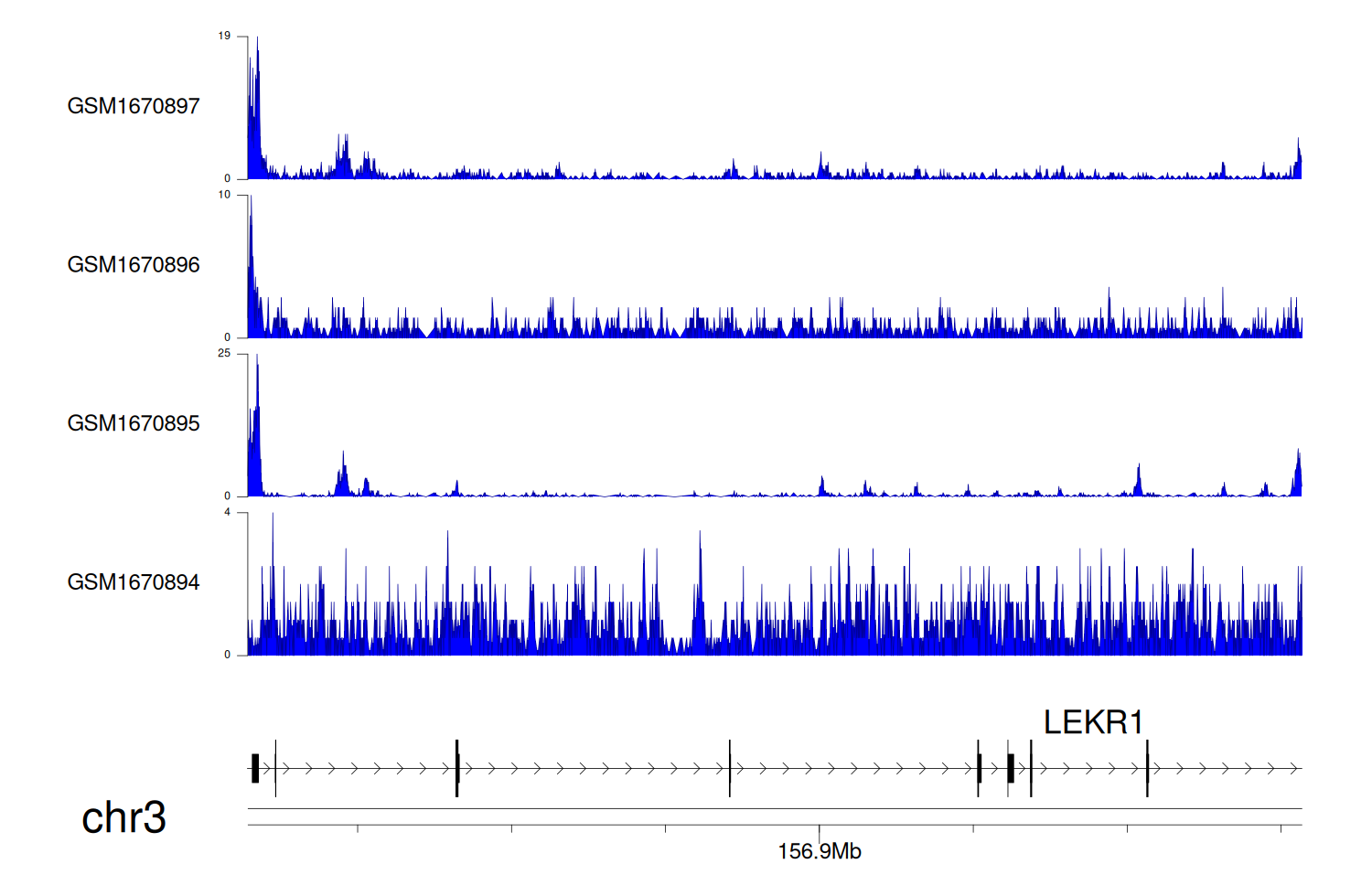 > Dataset: GSE68402 - LEKR1 peak across samples