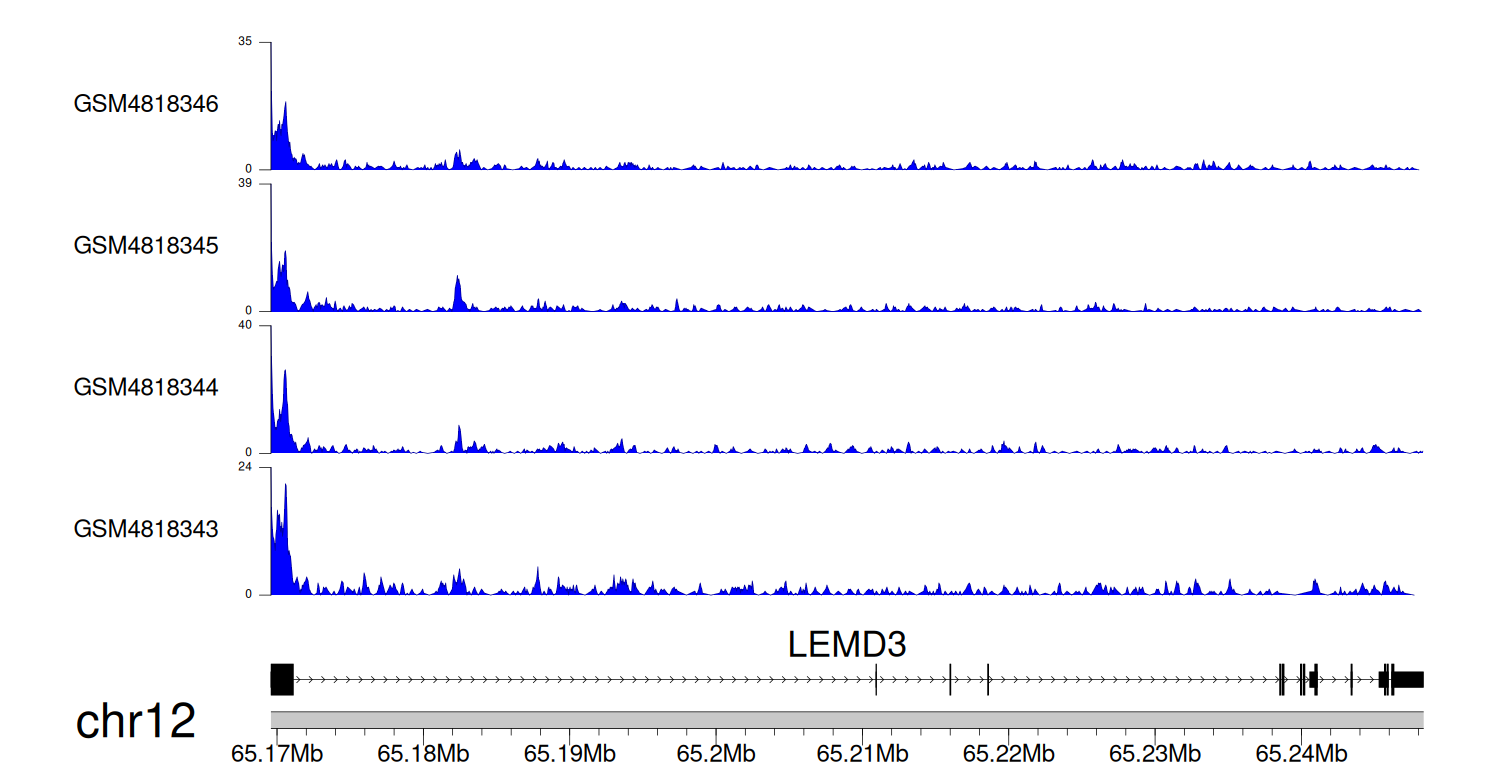 > Dataset: GSE131257 - LEMD3 peak across samples