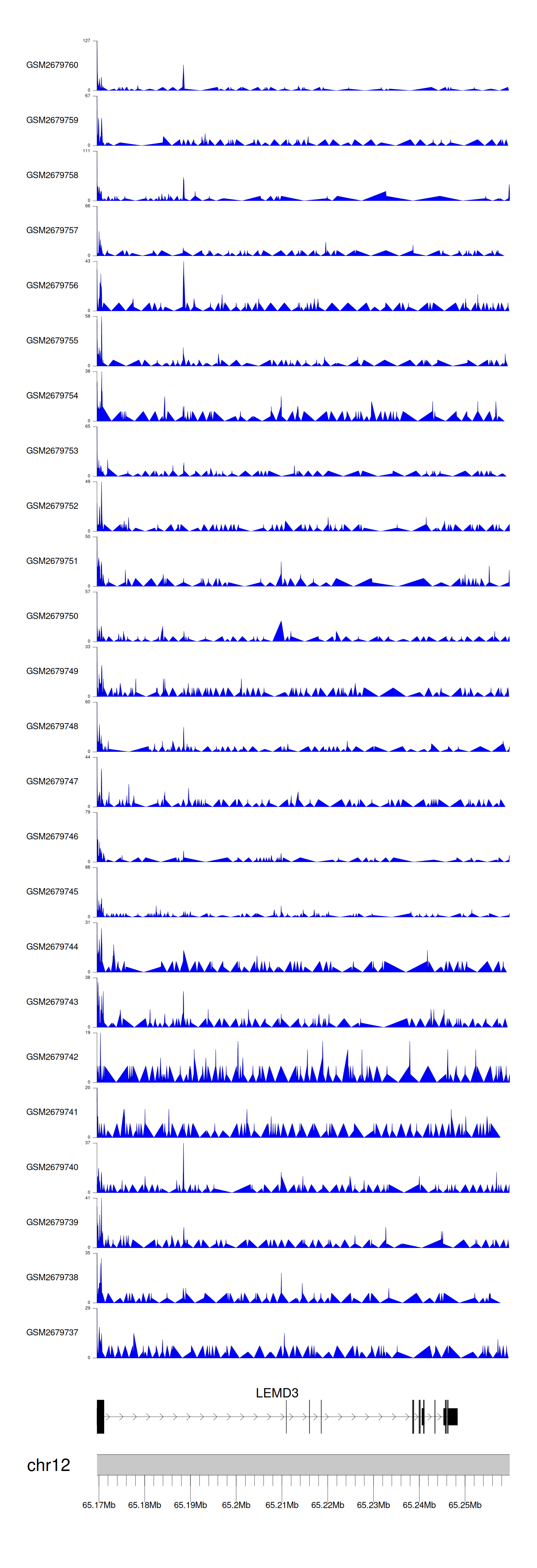 > Dataset: GSE165703 - LEMD3 peak across samples