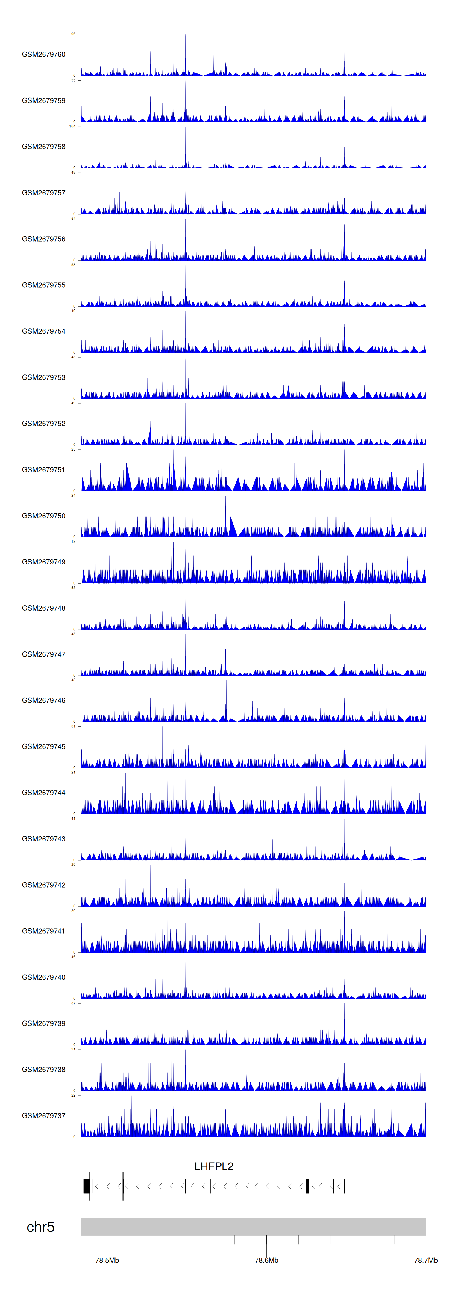 > Dataset: GSE165703 - LHFPL2 peak across samples