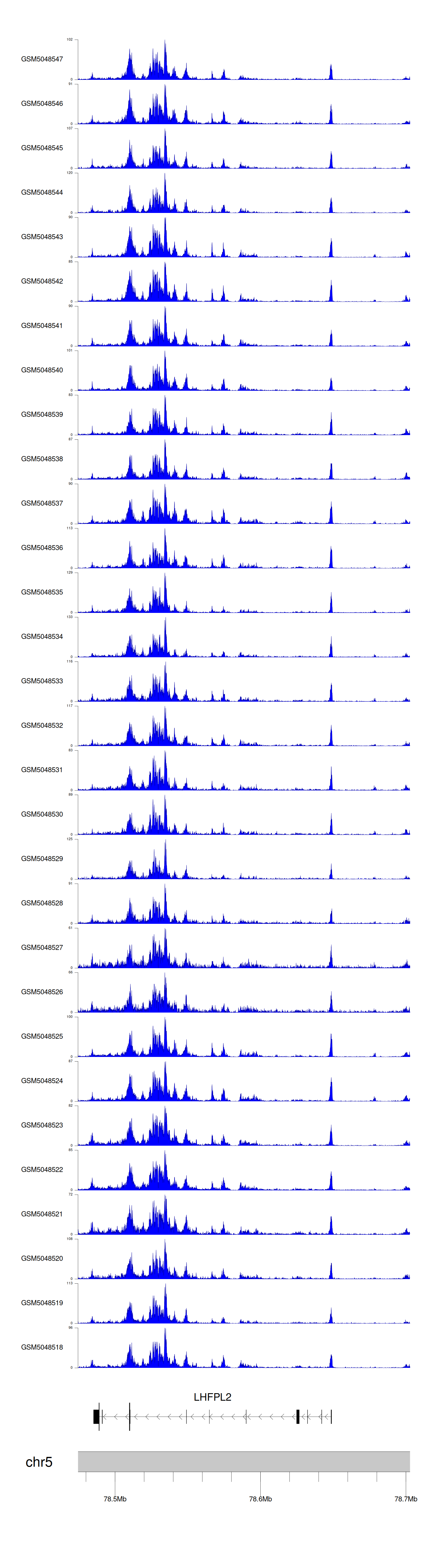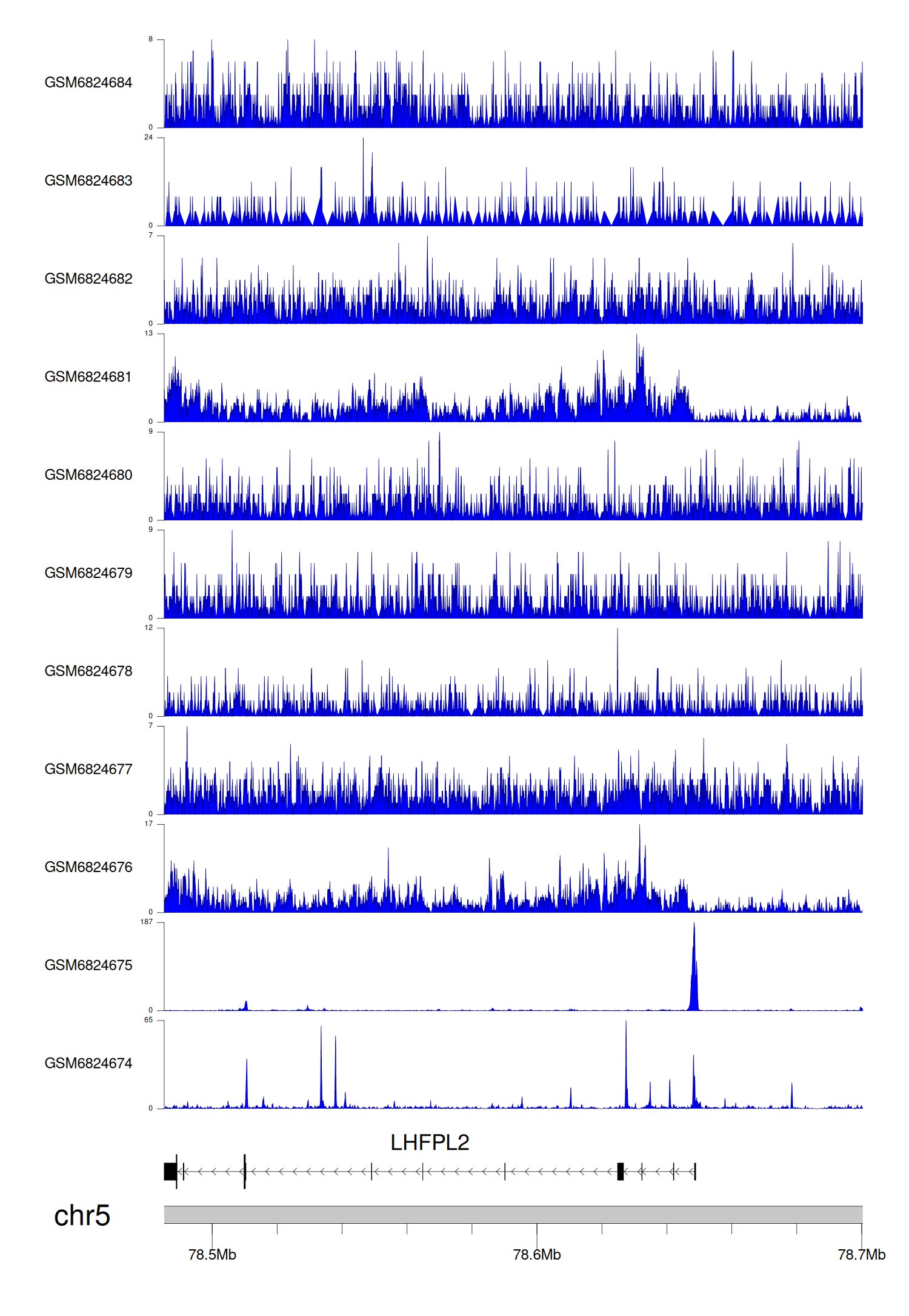 > Dataset: GSE144329 - LHFPL2 peak across samples