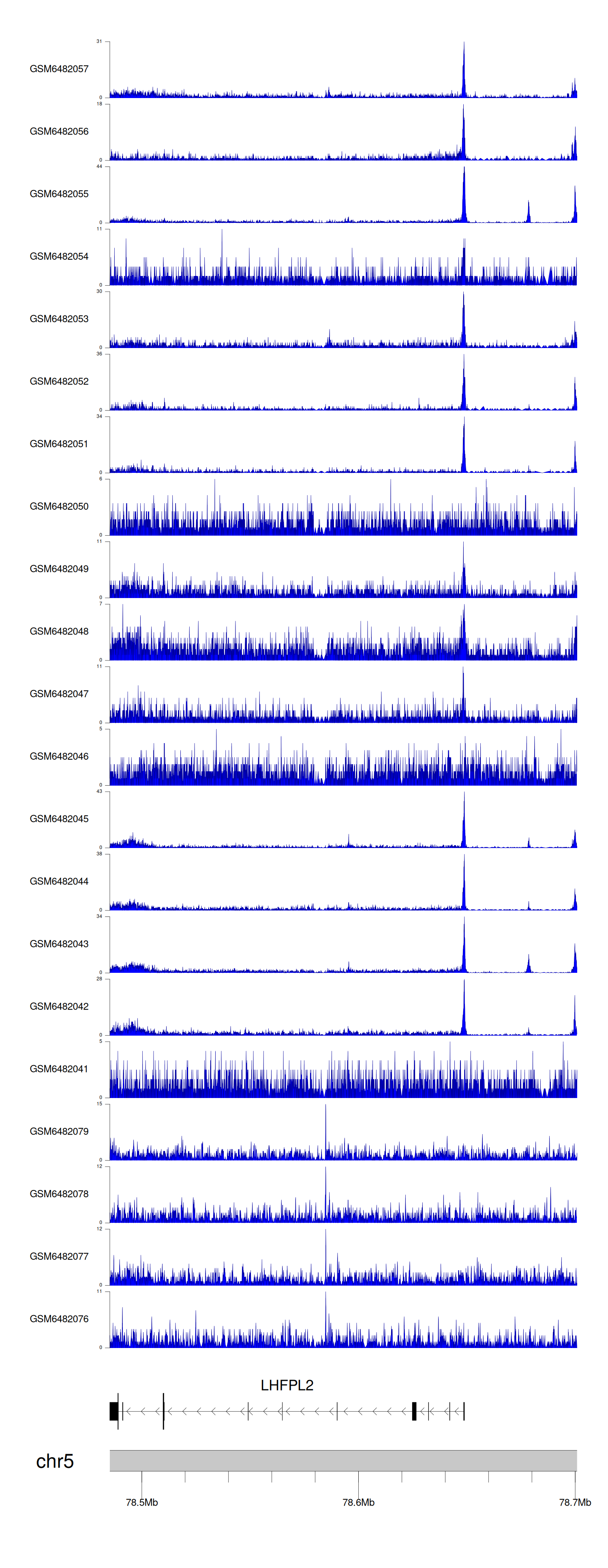 > Dataset: GSE165705 - LHFPL2 peak across samples