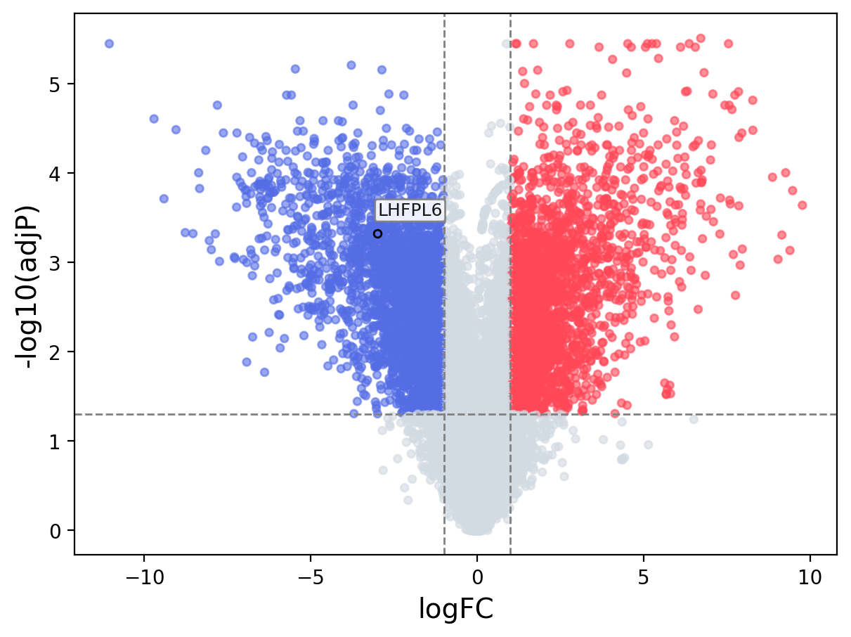 When the query gene is differentially changed in the dataset, a volcano/bar plot will be displayed.