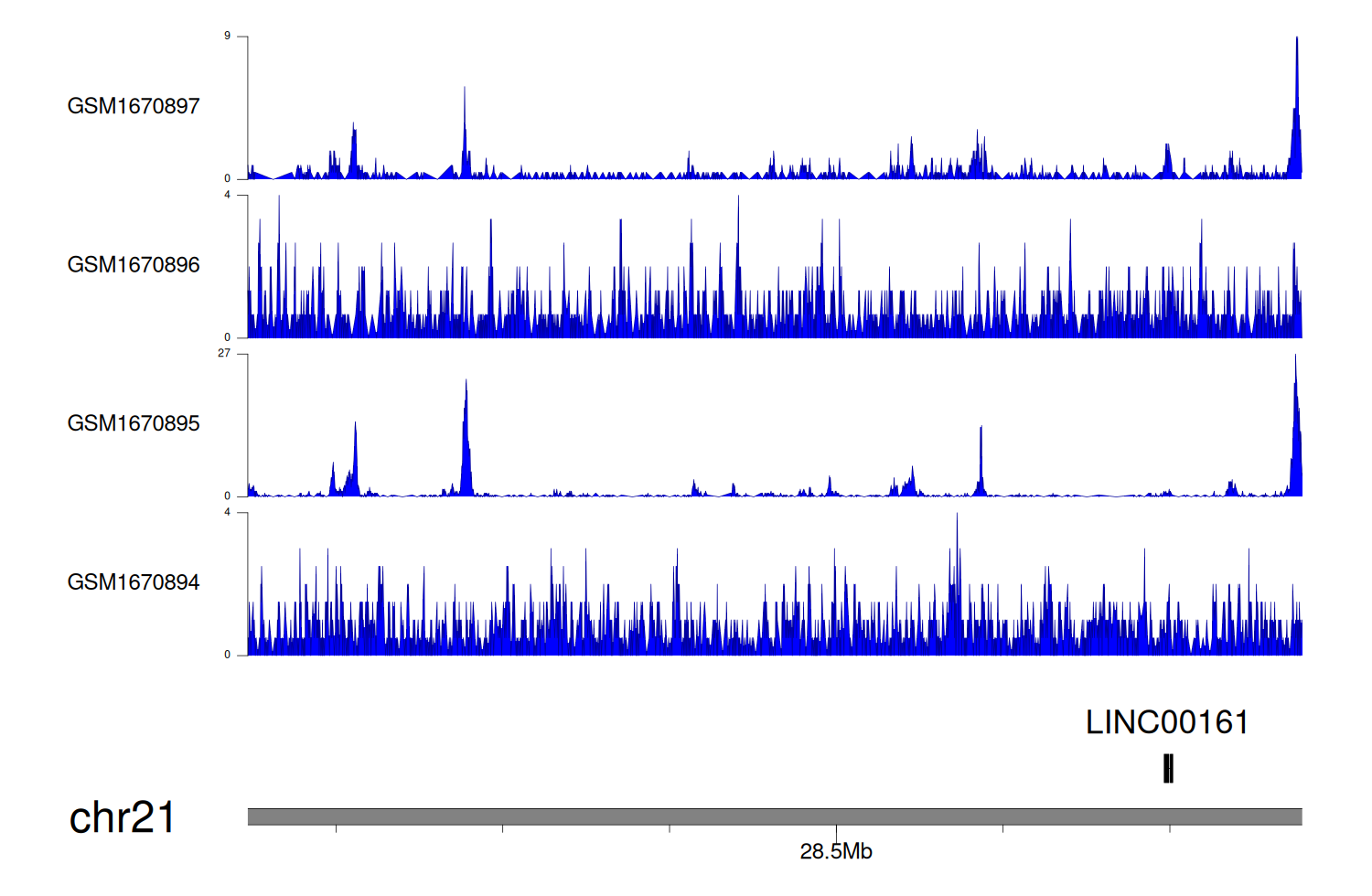 > Dataset: GSE68402 - LINC00161 peak across samples