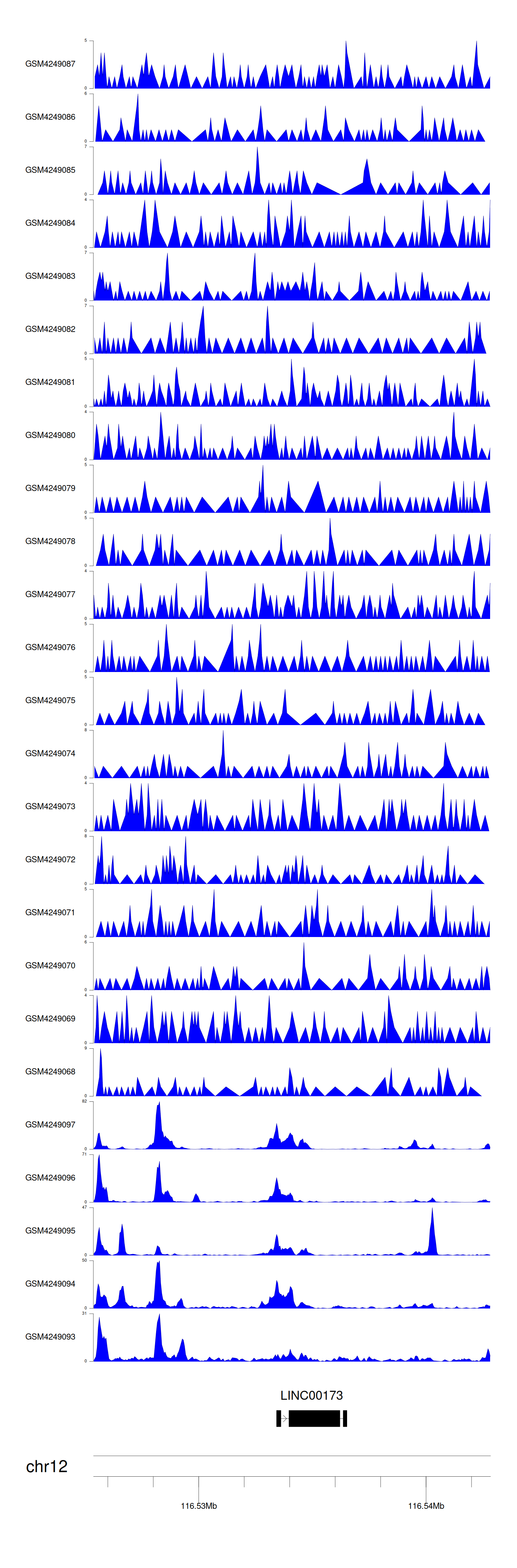 > Dataset: GSE143026 - LINC00173 peak across samples