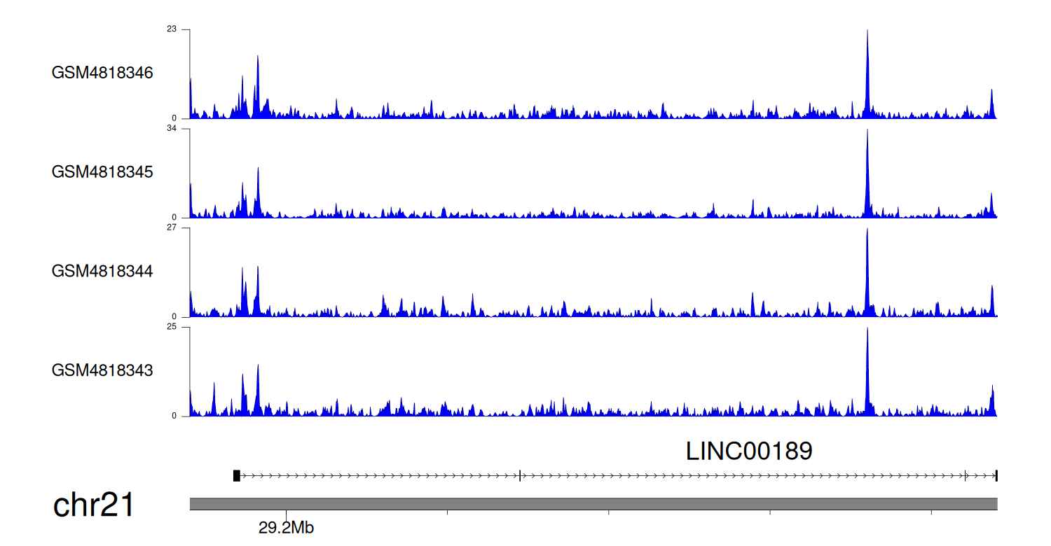 > Dataset: GSE131257 - LINC00189 peak across samples