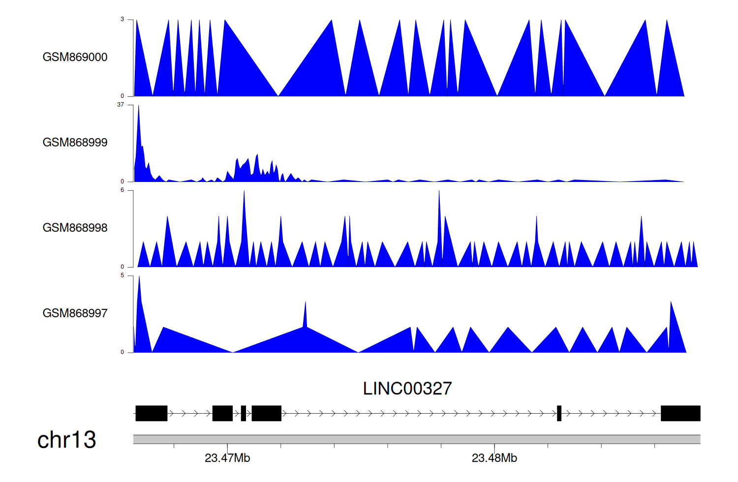 > Dataset: GSE68402 - LINC00327 peak across samples
