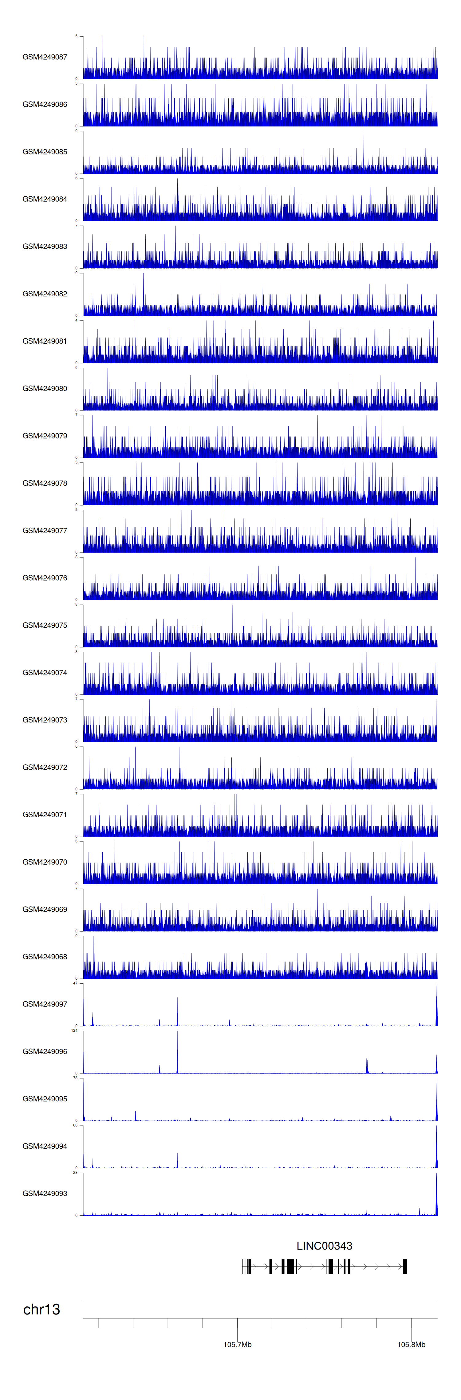 > Dataset: GSE143026 - LINC00343 peak across samples