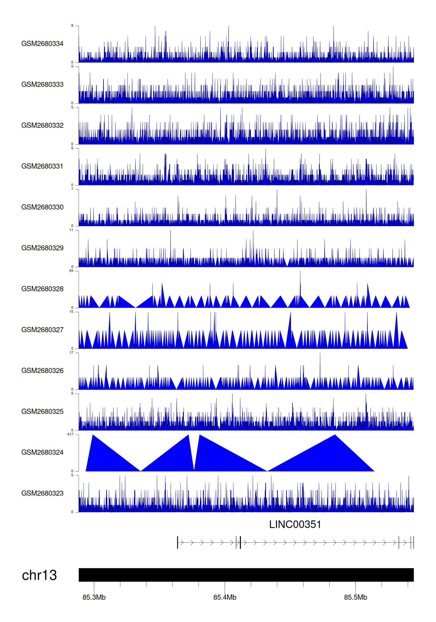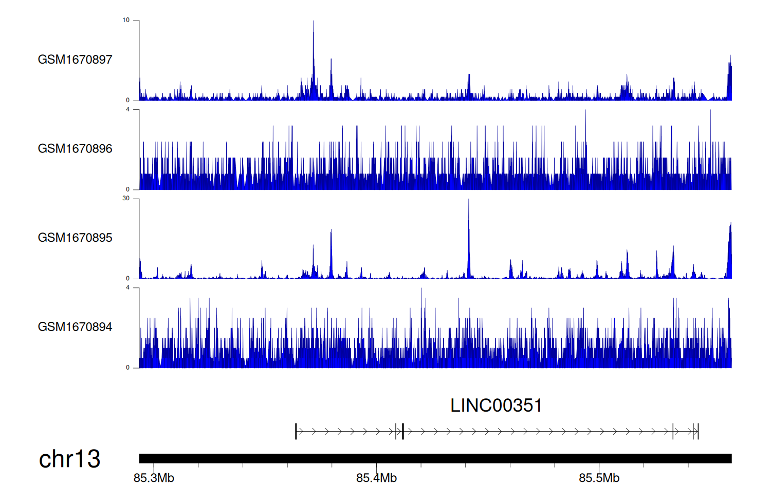 > Dataset: GSE68402 - LINC00351 peak across samples