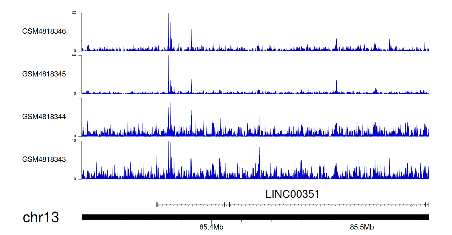 > Dataset: GSE131257 - LINC00351 peak across samples