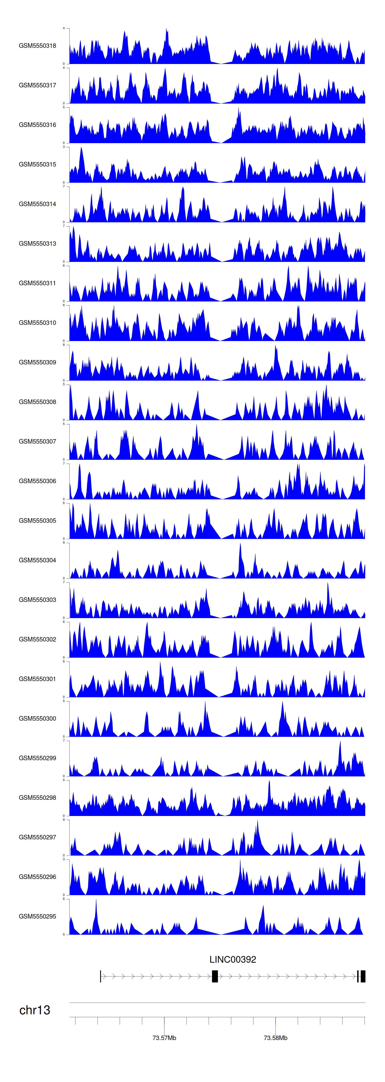 > Dataset: GSE143026 - LINC00392 peak across samples
