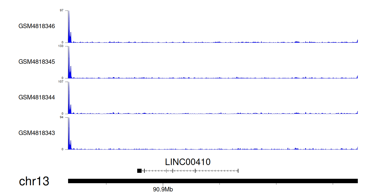 > Dataset: GSE131257 - LINC00410 peak across samples