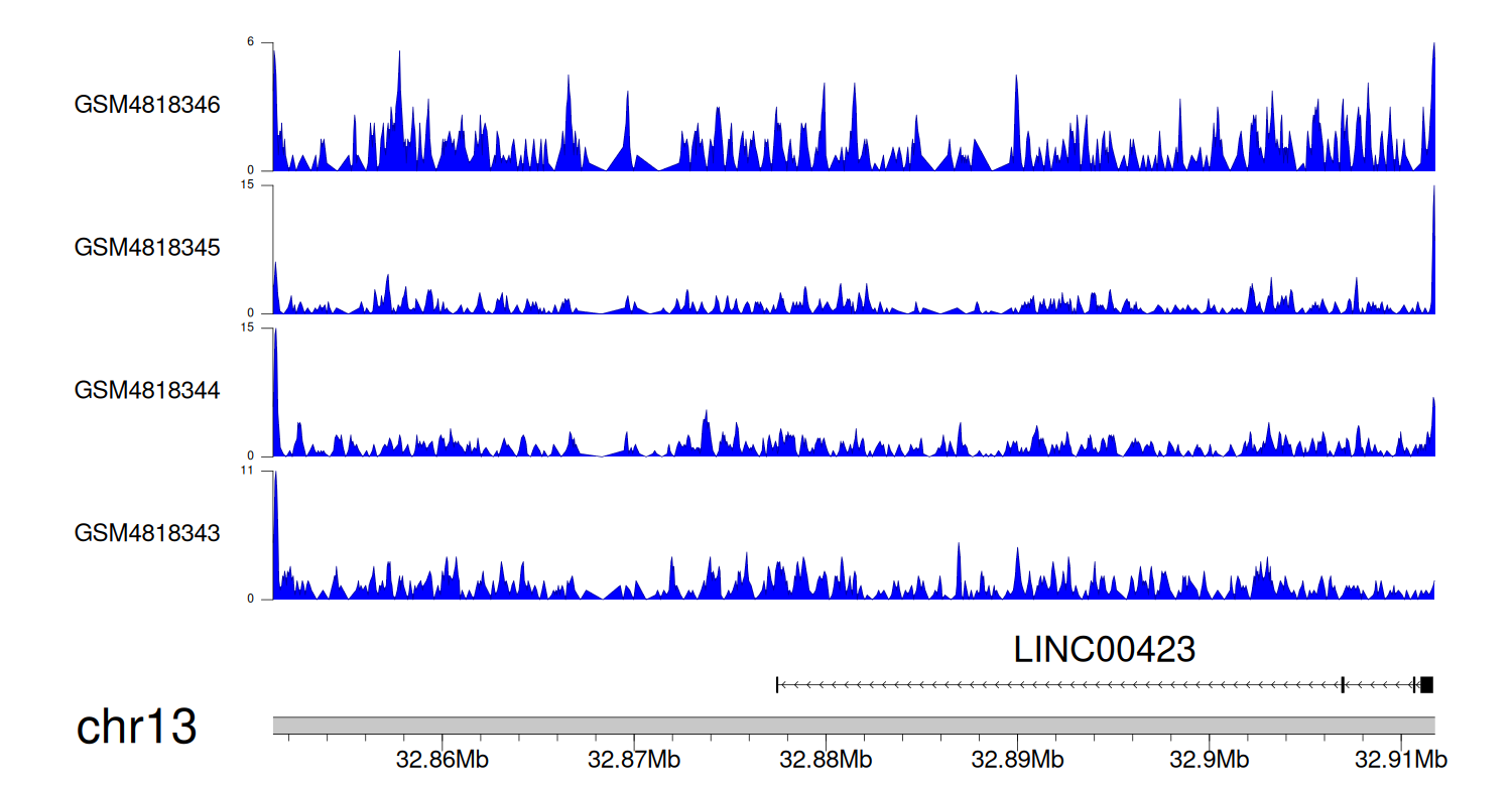 > Dataset: GSE131257 - LINC00423 peak across samples
