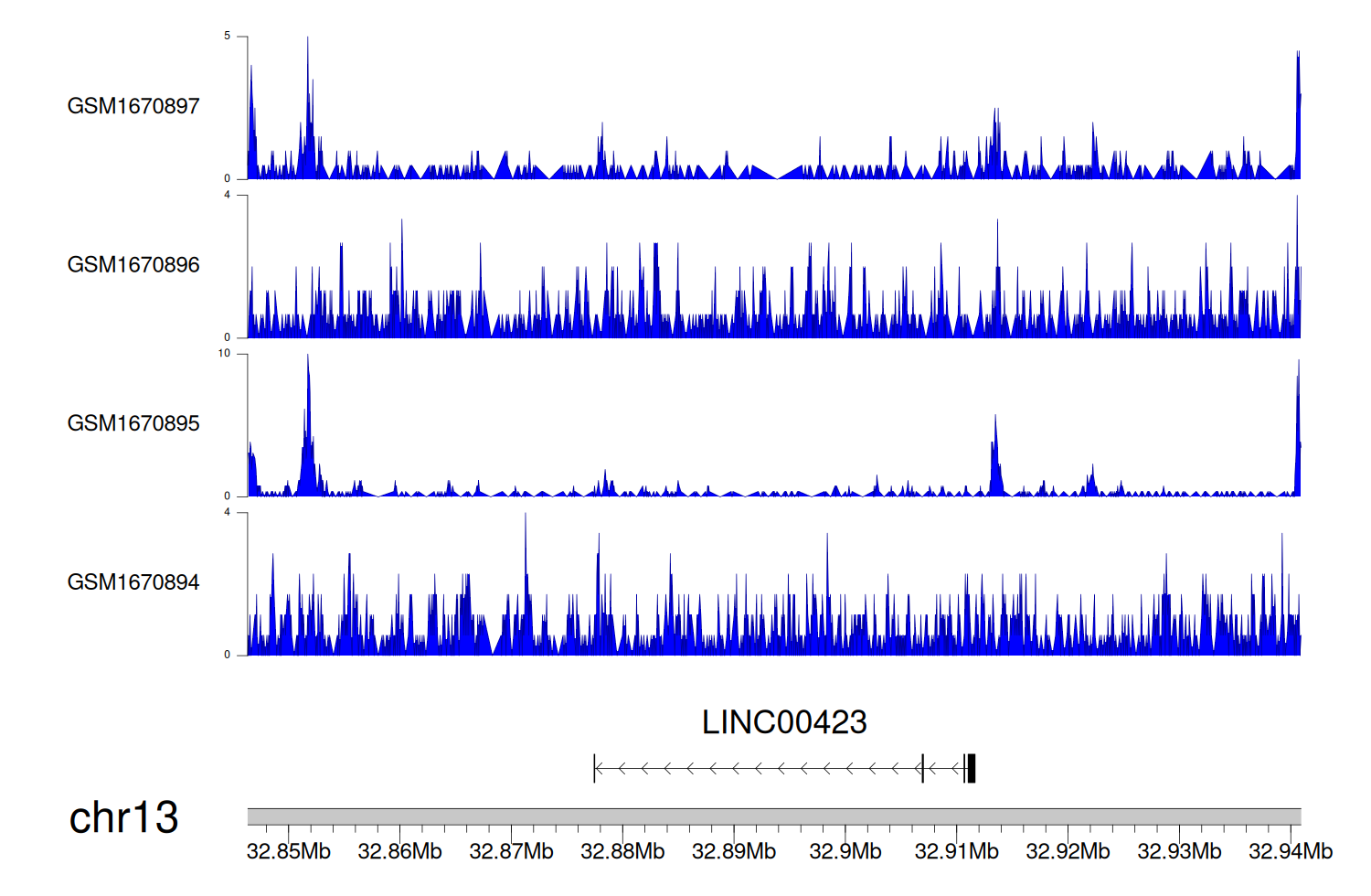 > Dataset: GSE68402 - LINC00423 peak across samples
