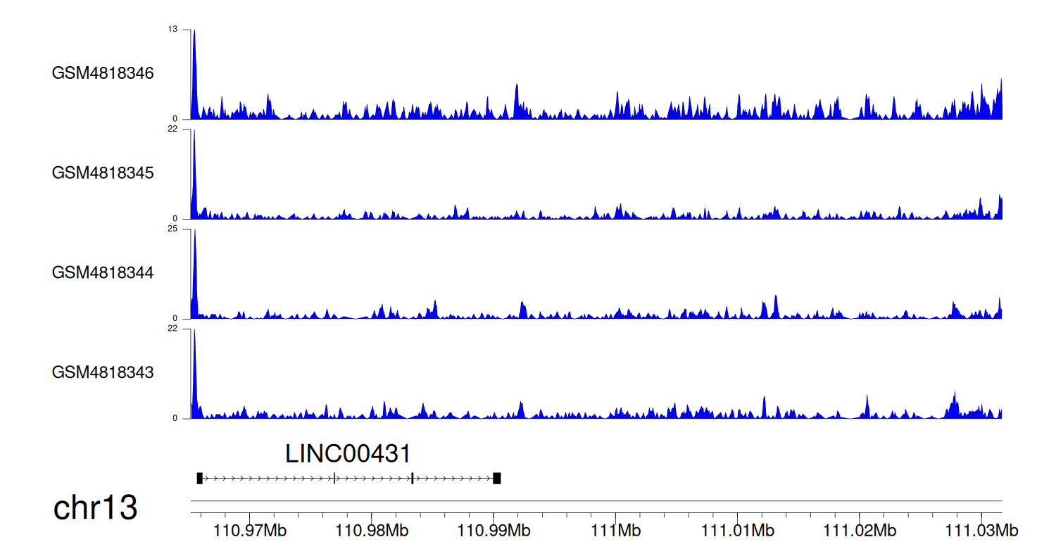 > Dataset: GSE131257 - LINC00431 peak across samples