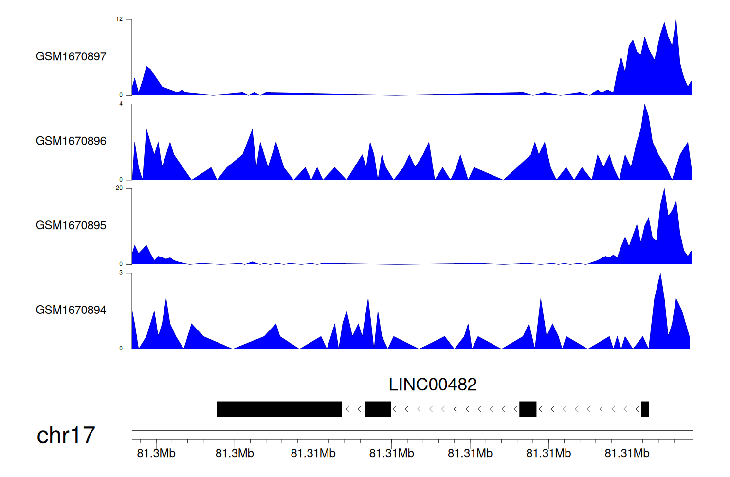 > Dataset: GSE68402 - LINC00482 peak across samples