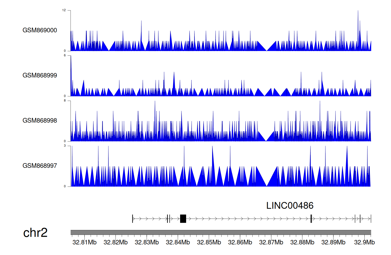 > Dataset: GSE68402 - LINC00486 peak across samples