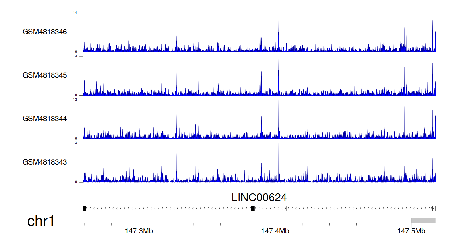 > Dataset: GSE270130 - LINC00624 peak across samples