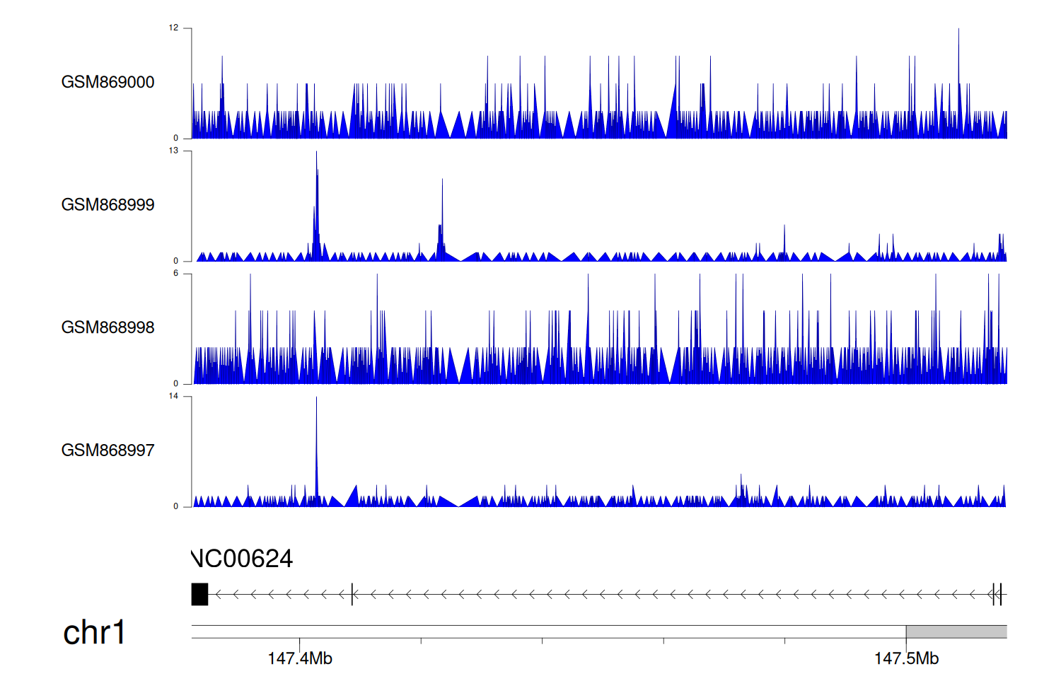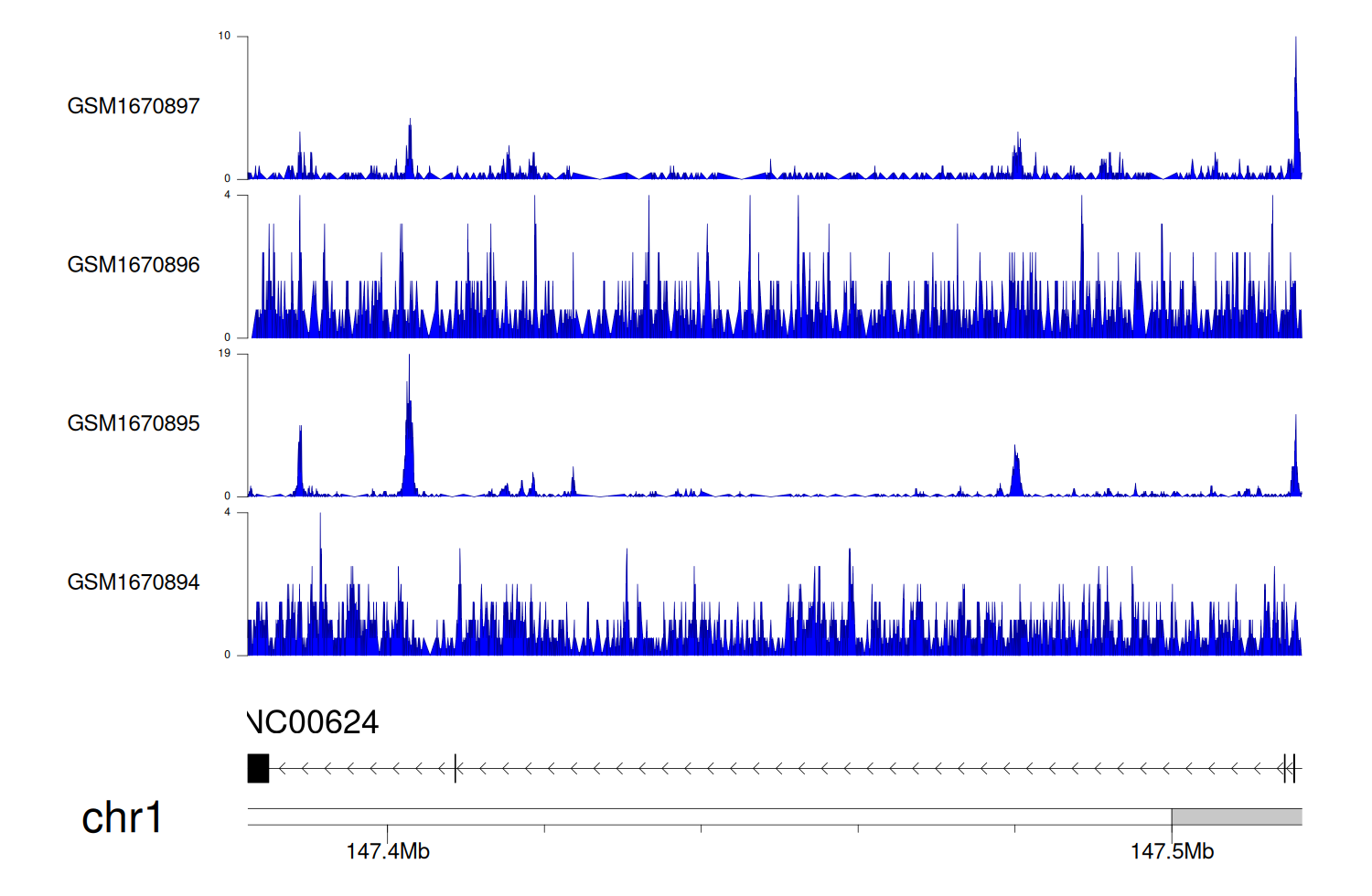> Dataset: GSE68402 - LINC00624 peak across samples