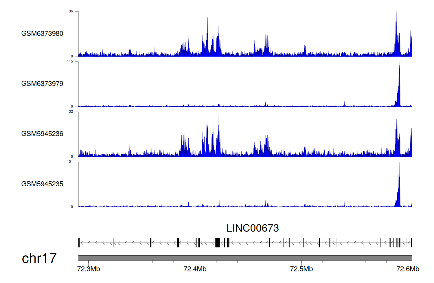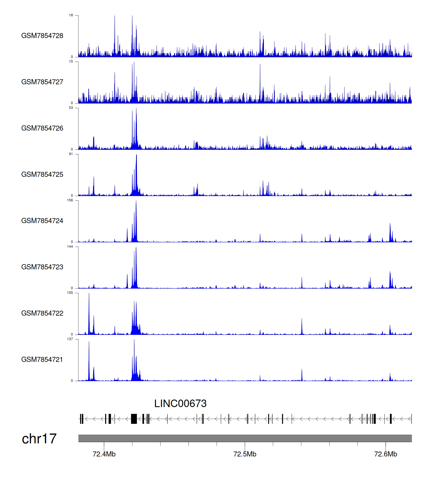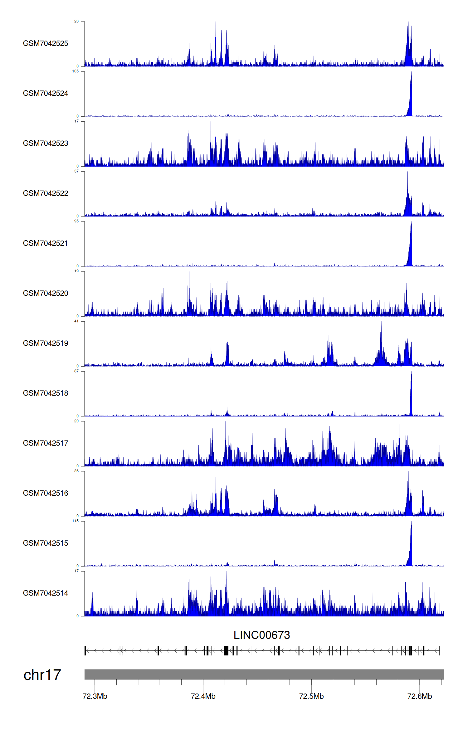 > Dataset: GSE246059 - LINC00673 peak across samples