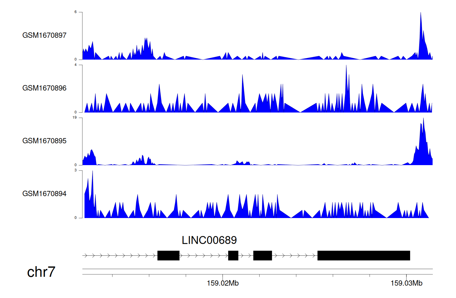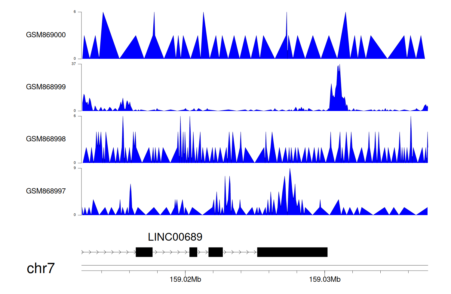 > Dataset: GSE68402 - LINC00689 peak across samples