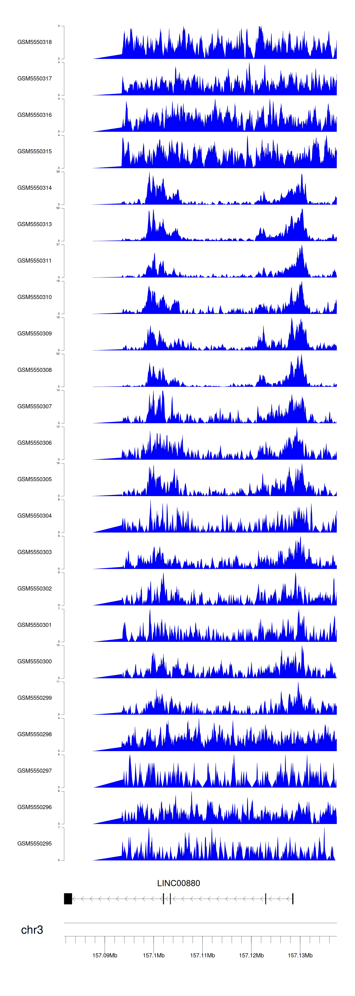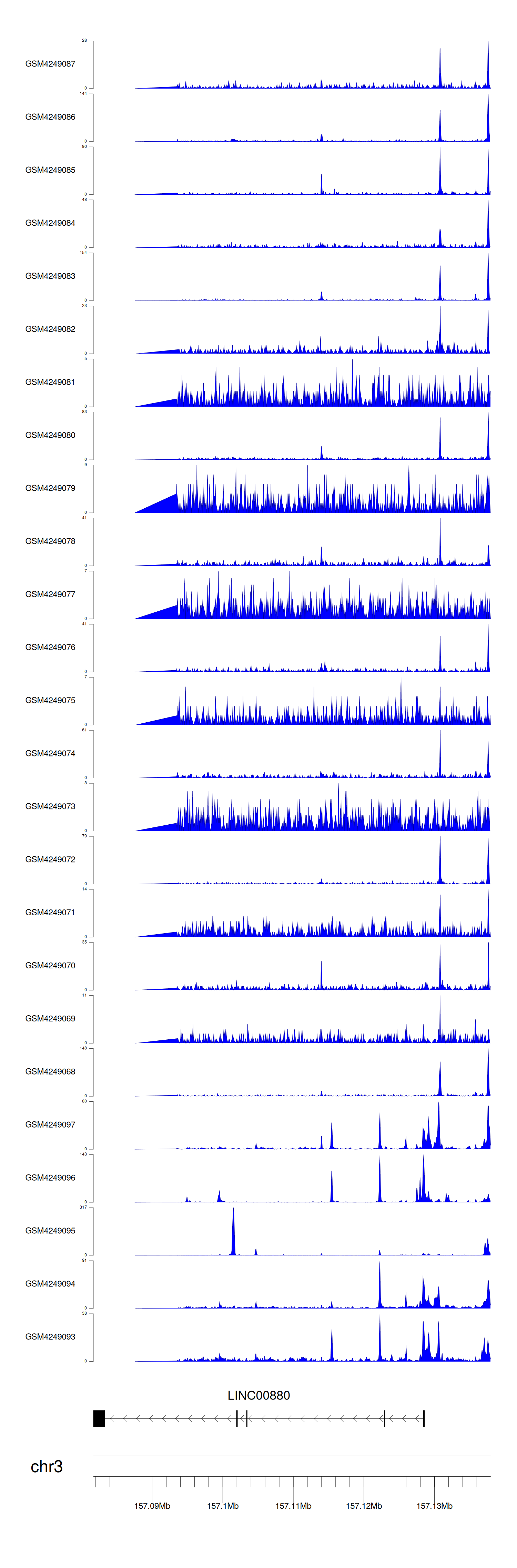 > Dataset: GSE143026 - LINC00880 peak across samples