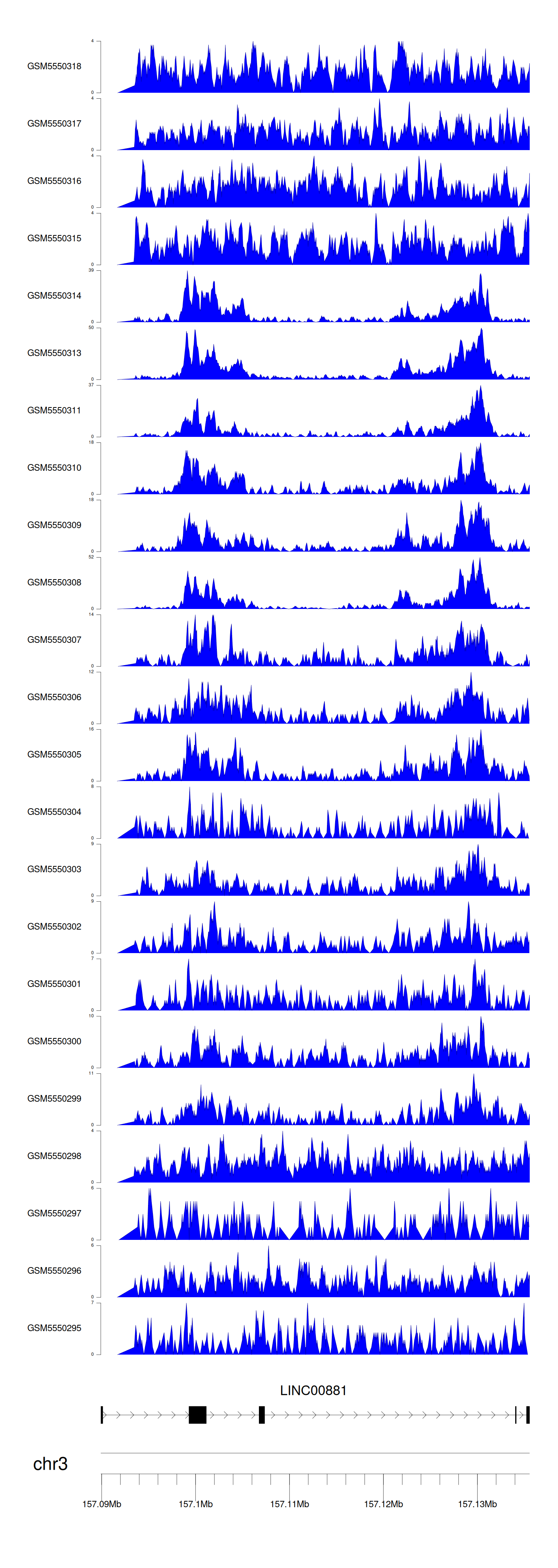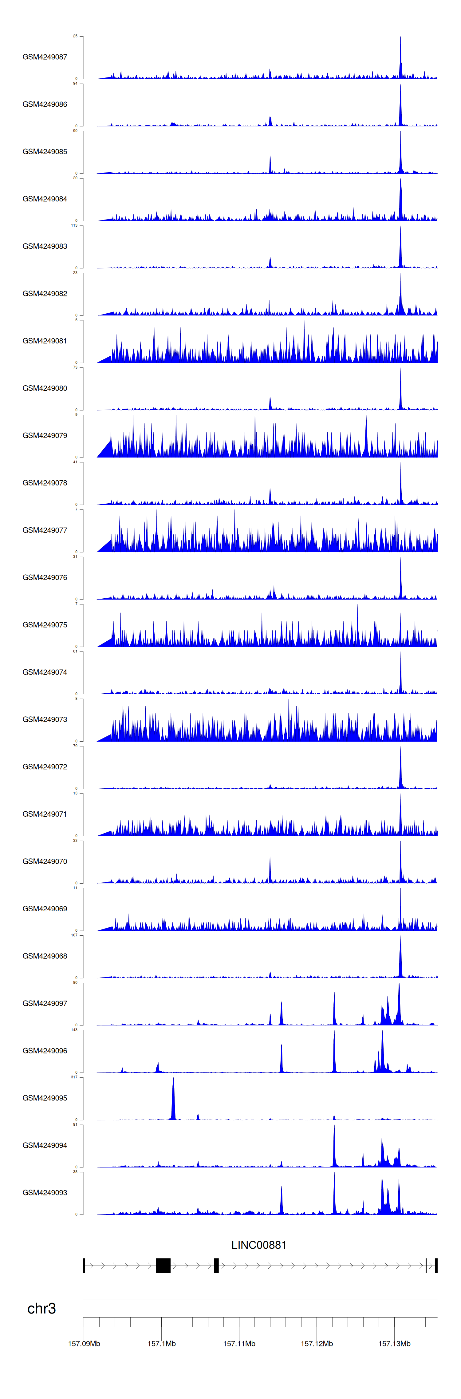 > Dataset: GSE143026 - LINC00881 peak across samples