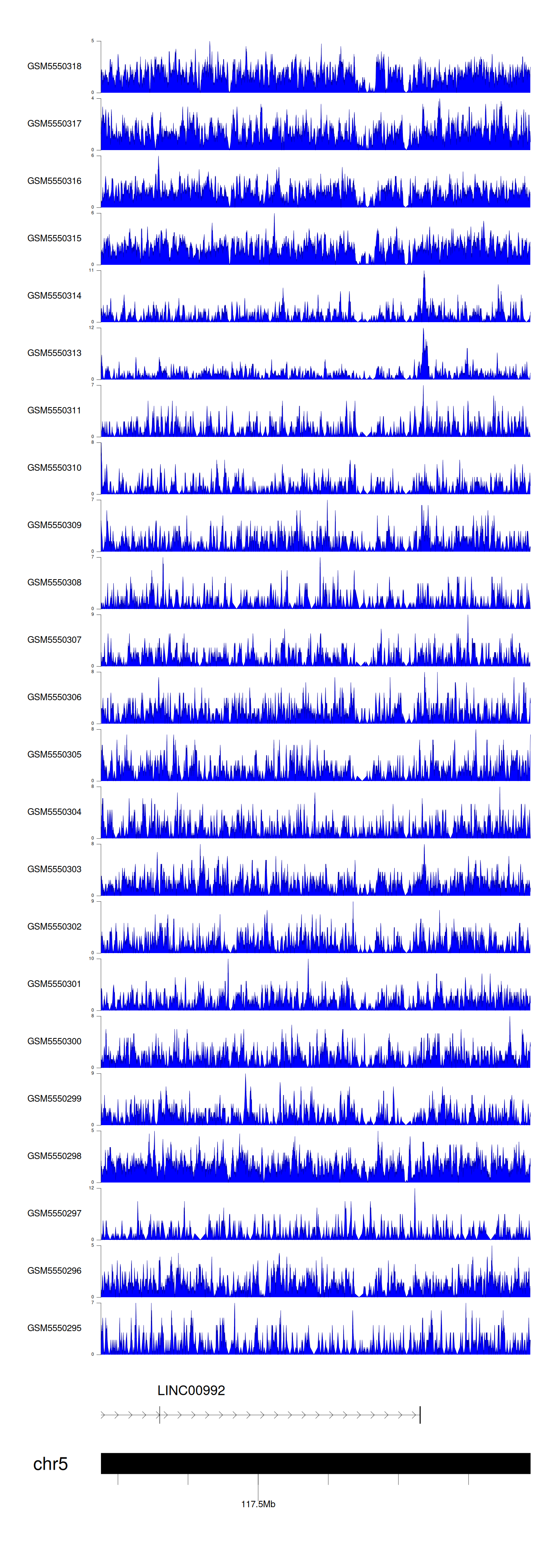 > Dataset: GSE143026 - LINC00992 peak across samples