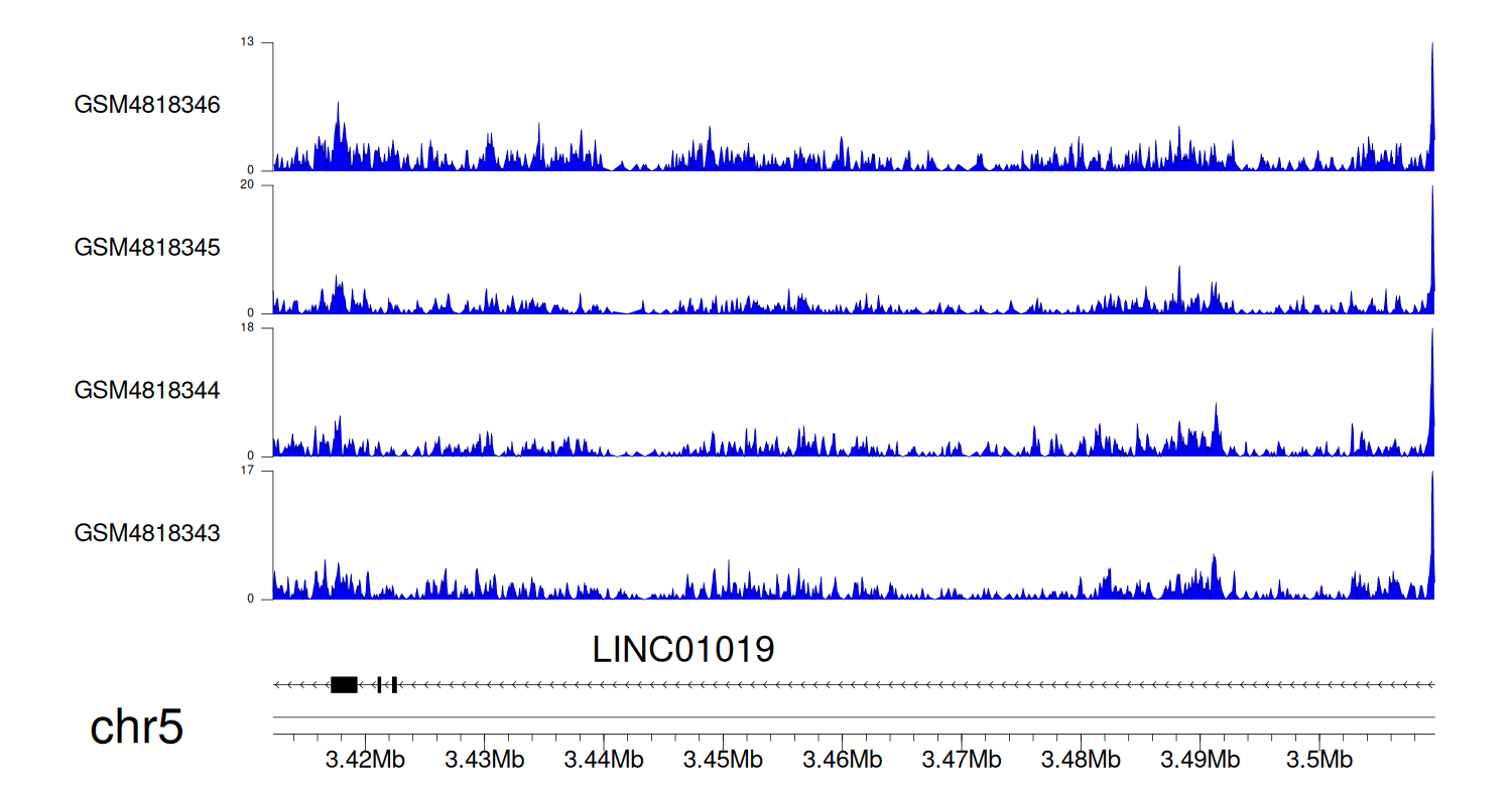 > Dataset: GSE131257 - LINC01019 peak across samples
