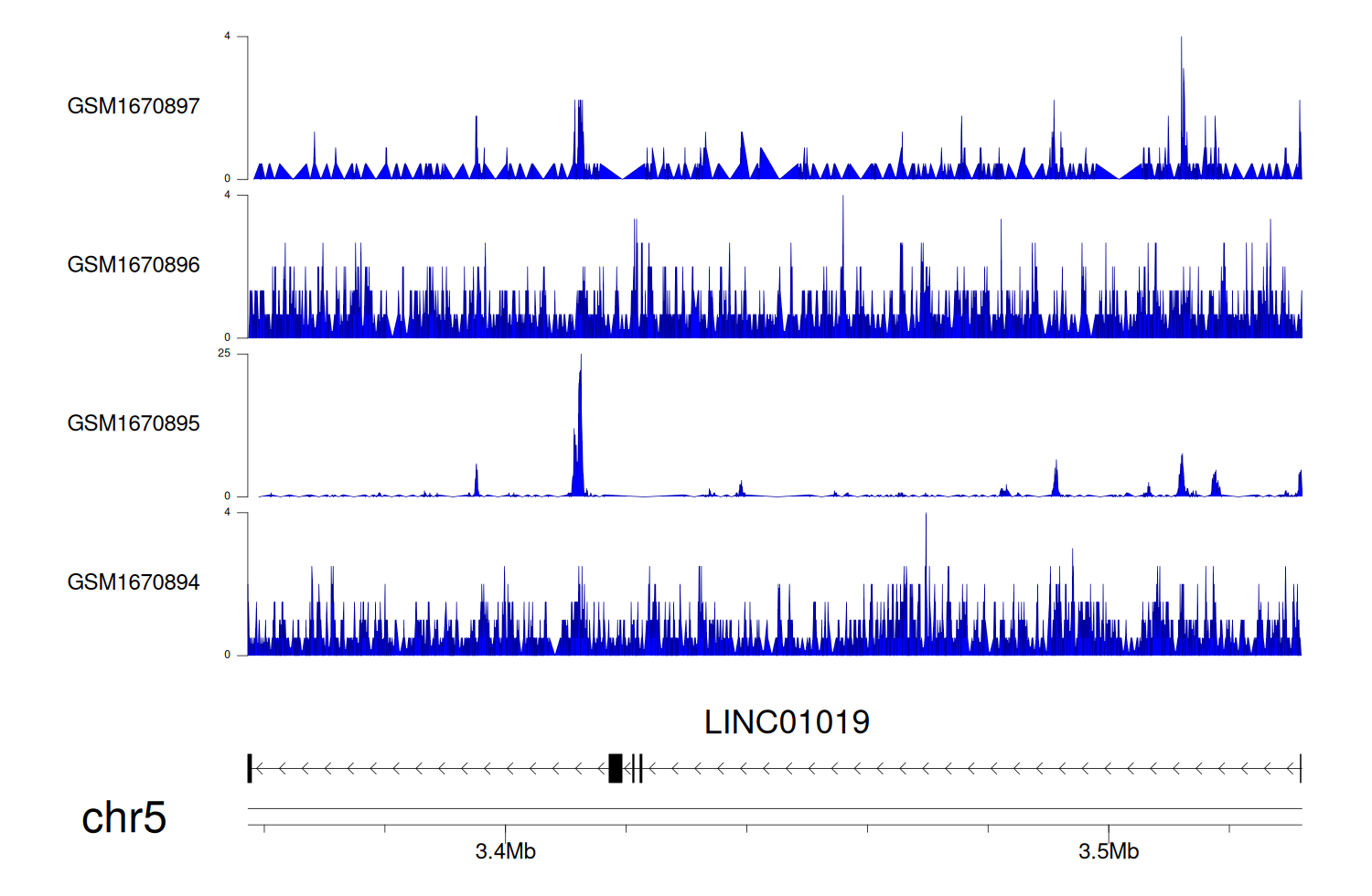 > Dataset: GSE68402 - LINC01019 peak across samples