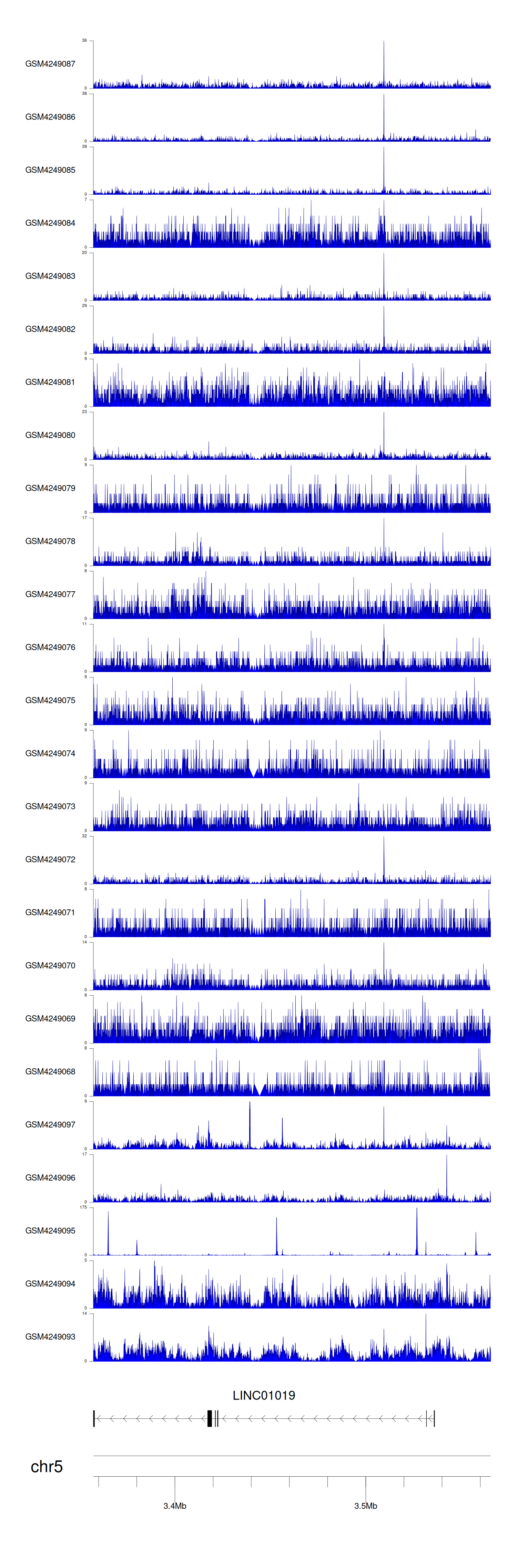 > Dataset: GSE143026 - LINC01019 peak across samples