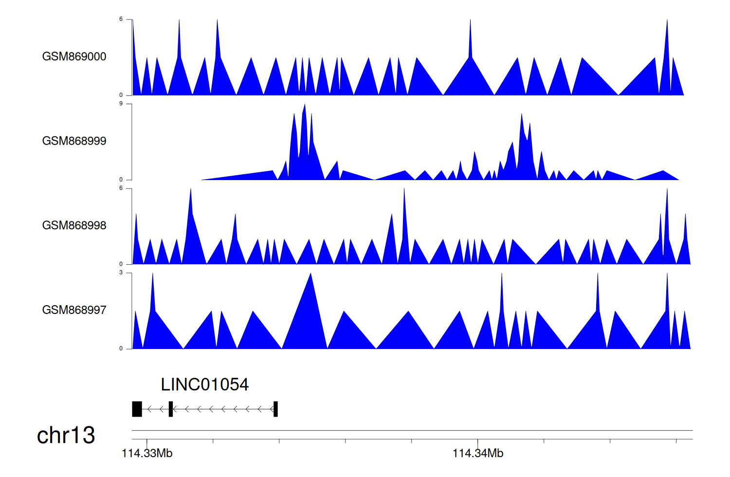 > Dataset: GSE68402 - LINC01054 peak across samples