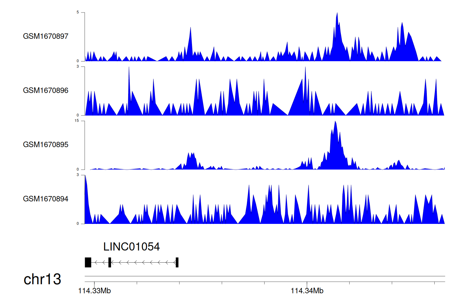 > Dataset: GSE100400 - LINC01054 peak across samples