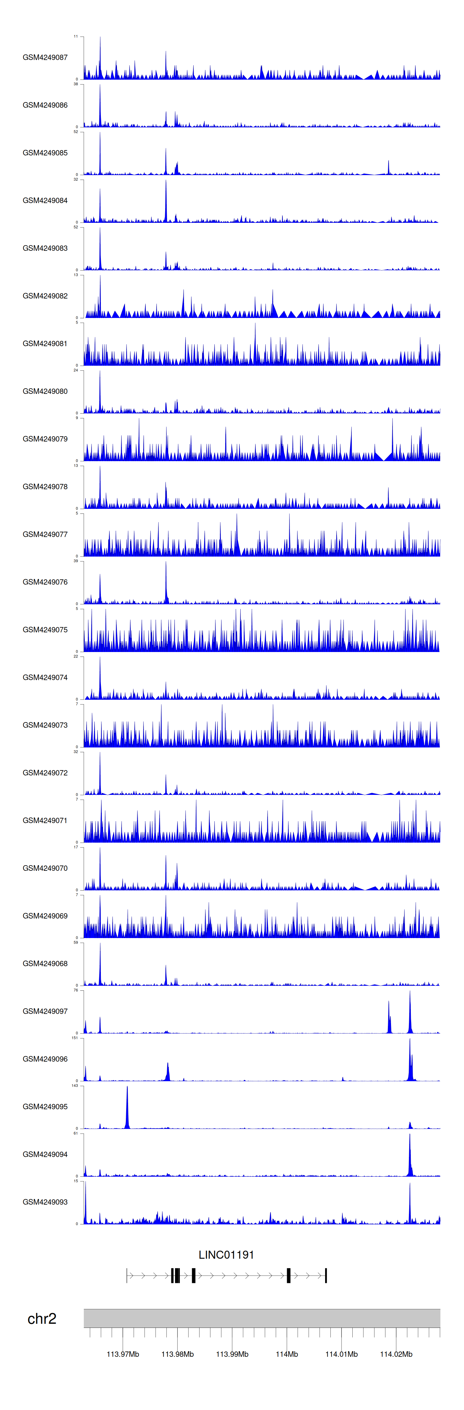> Dataset: GSE143026 - LINC01191 peak across samples