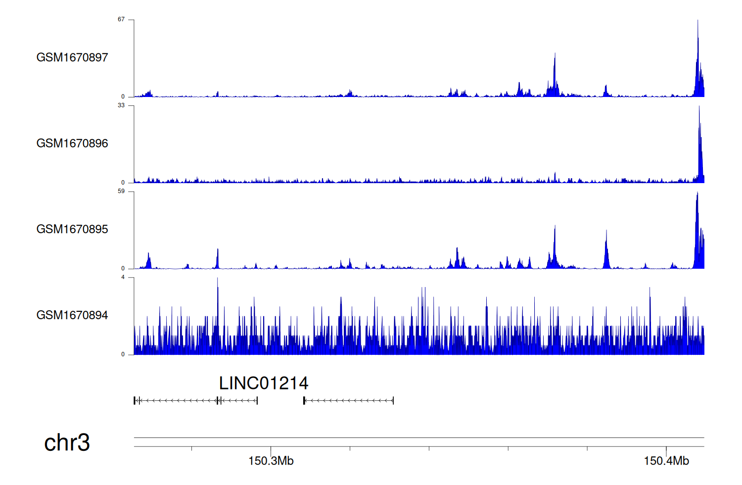 > Dataset: GSE68402 - LINC01214 peak across samples