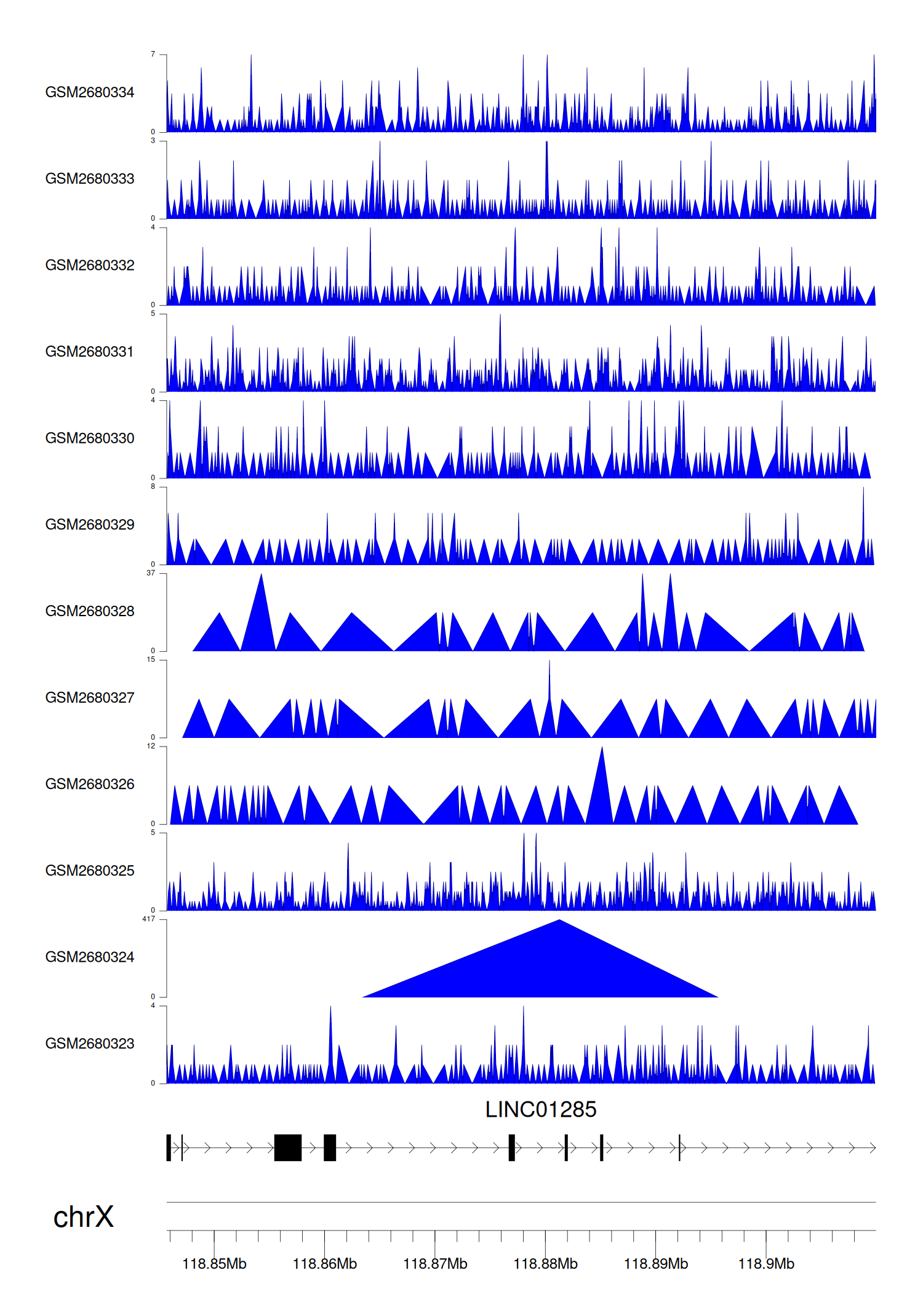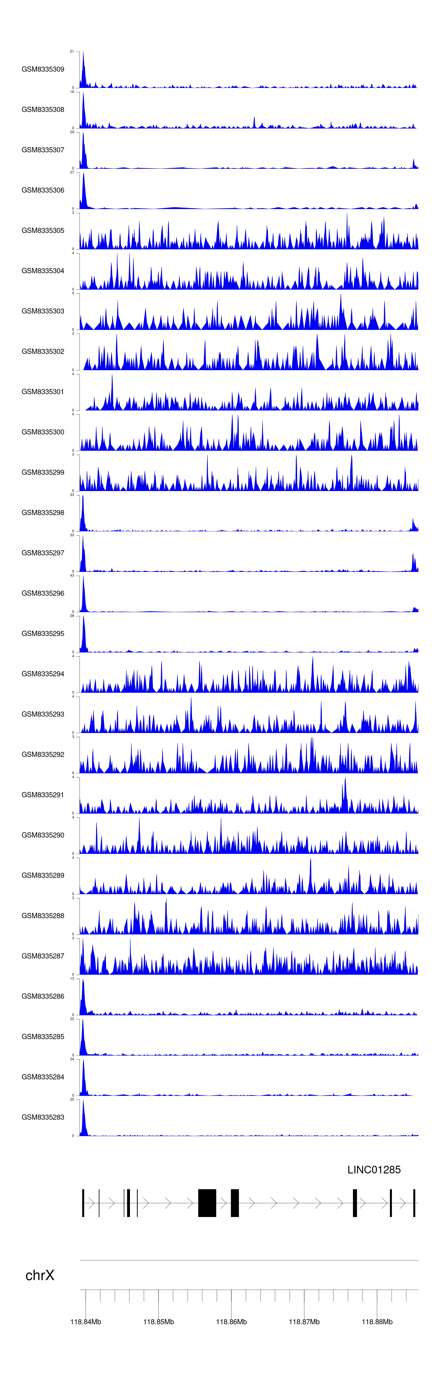 > Dataset: GSE270130 - LINC01285 peak across samples